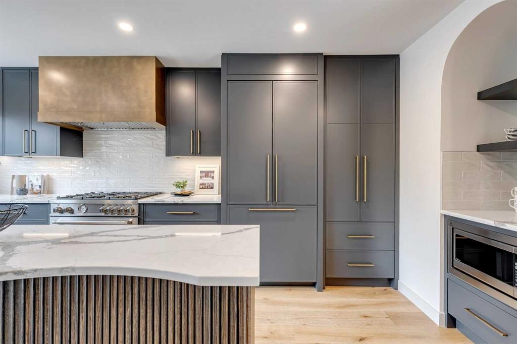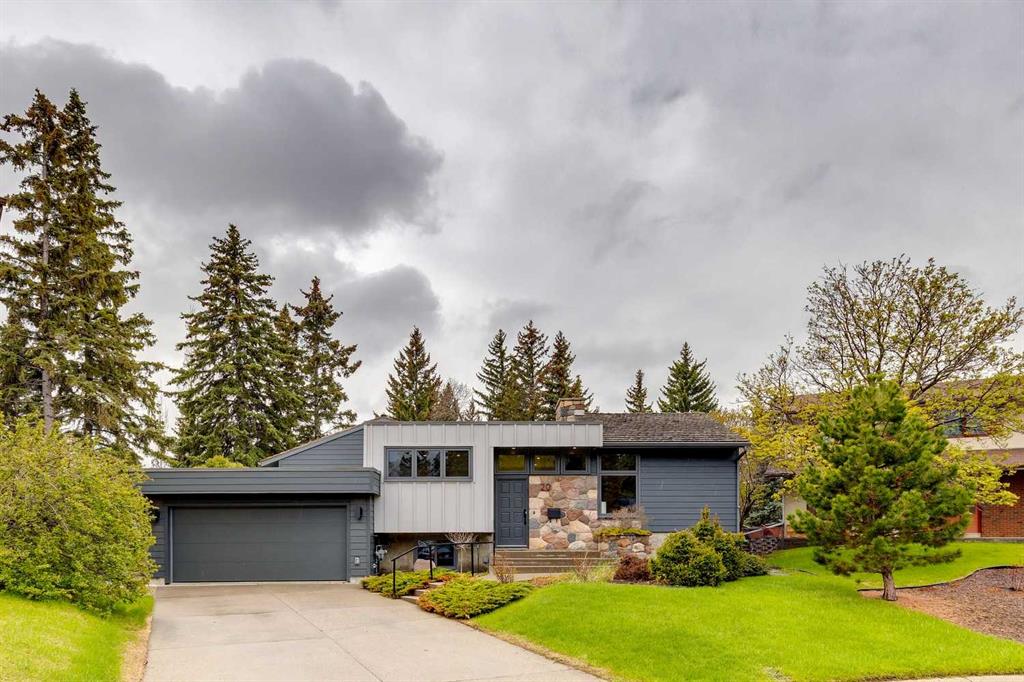 Newly renovated in 2024 this architectural gem in the desired amenity-rich community of Varsity is now ready for you to move in. Perched on a large 9,687 sqft (.22 ac) lot, with a SW back yard, in a quiet cul-de-sac, and backing onto the community’s expansive tree lined walking paths. The design forward floor plan includes 3,000 sqft of total living space. With the addition of a large and functional mudroom connecting the main floor to the large garage, this home functions like a bungalow with all principal rooms located on the main floor level while 3 bedrooms in the lower level provide versatility for a mature family, the empty nester, or expanding family alike. In collaboration with McDowell Design, Laratta Homes has preserved and transformed this mid-century modern classic into a functional and timeless home to complement your contemporary lifestyle. The lower-level features nine large windows above ground that shed light into the lower level, fully integrating the upper and lower living spaces. An open and light filled living concept, a meld of original rustic structures and contemporary interior design features. The contemporay architecture is combined with a vaulted open beamed ceiling that houses two stone fireplaces, five bedrooms (or four plus a home office), three full baths, dining and living room spaces and an oversized double front drive attached garage with driveway, combined parking for six vehicles. The new custom-built open concept Kitchen features a see-through metal art wall and a curved and reeded oak island along with a Bertazoni gas range, fully integrated Dacor fridge with freezer, stainless steel dishwasher, microwave and concealed under cabinet lighting and coffee and beverage bars conveniently placed for entertaining. White oak planked and Italian tile flooring are found throughout the main floor. Quartz counters over custom-built cabinets throughout. The lower level boasts three bedrooms, a full bathroom, a rec room, games area, wet bar, cold room, and light filled Laundry room. Meticulously restored to include new torched on flat roof, updated cedar shakes on sloped roofs, new metal clad vinyl windows with wide Brickmolds, new Hardie lap and board and batten siding, soffit, eaves and garage door, new electrical wiring and panel, EV power outlet in garage, two zoned controlled forced air furnaces with AC line set, natural gas BBQ line to rear wood deck and gas starter to wood burning fireplaces, engineered insulation and envelope specifications, all new lighting and plumbing fixtures. Nestled in Varsity, a location coveted for its proximity to the University of Calgary, Alberta Children’s and Foothills Hospitals, Chartered French school, Edworthy Park, Community linear parks, McMahon Stadium, and walking distance to shopping and entertainment at Market Mall and the University District. The main thoroughfares and public transportation provide easy access to downtown, YYC Airport, Calgary Winter Club and Alberta’s mountain parks.