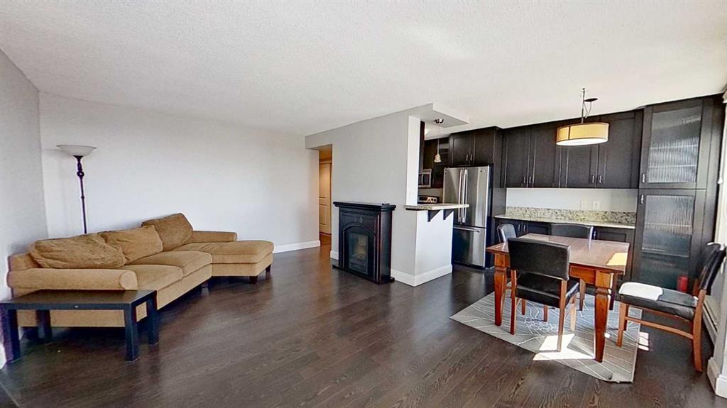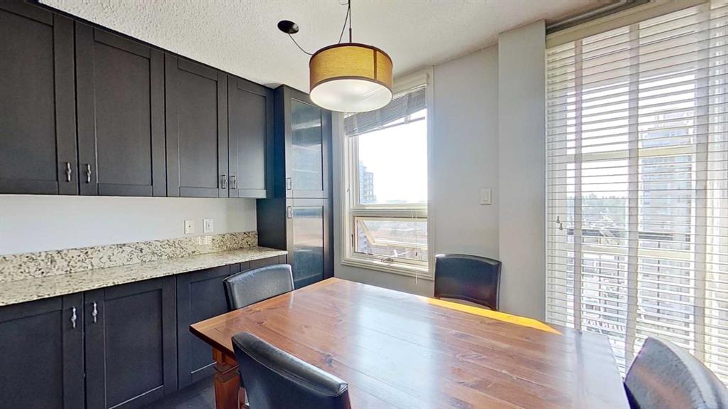 Southern exposure on the 15 th floor of the Centro 733 building lends to excellent lighting with a view that has not been boxed in by high rise buildings. This tidy 1-bedroom, 1-bathroom. home is in a pet friendly, located in the west Beltline district just 2 blocks off of 17 Avenue with all of its coffee shops and unique boutiques. Features include large windows, balcony to the south, granite countertops, apartment-size washer/dryer (although there is coin laundry available in the building), fridge, stove, microwave and new dishwasher. Condo fees cover gas/heat, water, sewer, electricity, garbage/recycling. Centro 733 offers excellent amenities, including two elevators, a fitness facility, a party room, bicycle and locker storage and an assigned covered parking stall.