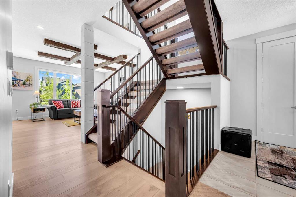 3,200 SQFT OF DEVELOPED SPACE | WALKOUT BASEMENT | BACKING ONTO GREENPATH I STEPS TO UPCOMING K-9 SCHOOL Welcome to your home!! - a perfect blend of luxury, convenience, and a fantastic location. Main Floor: As you enter, you're greeted by a welcoming foyer with elegant ceramic tile flooring .The spacious living room under the COFFERED CEILING, with a cozy FIREPLACE is perfect for warming those quiet evenings or entertaining gatherings. The LUXURY VINYL PLANK flooring adds a touch of sophistication. Moving into the kitchen, you'll love the ample counter space of the OVERSIZED ISLAND, the sleek look of CABINETS TO THE CEILING, and the functionality of the gas cooktop, built-in microwave,oven, and a BUTLER'S KITCHEN with a SECOND SINK for extra prep space. The dining area, with its BUILT-IN CABINETS and OVERSIZED WINDOWS, offers a perfect spot to enjoy meals while overlooking the serene green path. Step outside onto the deck, where you can unwind with MOUNTAIN VIEWS and the tranquility of nature. Upper Floor: The EXPANSIVE Primary Bedroom invites you to relax in luxury, with a 5-piece ensuite featuring HEATED FLOORING, DOUBLE VANITY, a large SOAKER TUB, and a spacious walk-in closet. Imagine the comfort of two additional large bedrooms with enough space for KING-sized BEDS for your dear ones. The Bonus Room, with its COFFERED BEAMS and second FIREPLACE, is perfect for entertainment. The laundry room, well-equipped with CABINETS, and an additional FLEXI ROOM add convenience. A full 4-piece bathroom with DOUBLE VANITY completes this level. Walkout Basement: Expand your living space with a finished rec room, with WET BAR, perfect for movie nights or game days. An additional bedroom and a 4-piece bathroom provide additional living quarters. Other Upgrades: CUSTOM BLINDS, 9 FEET CEILINGS, 8 FEET DOORS, WIRING FOR HOT TUB, EXPOSED AGGREGATE PATIO, ACCENT WALLS, METAL SPINDLES ON STAIRCASE RAILING, CENTRAL VACUUM, AIR CONDITIONER, EPOXY FLOORING and INSULATION IN GARAGE. Beyond Your Doorstep: Just steps away from the famous Legacy Ponds, a 300-acre environmental reserve, a smaller shopping center featuring a gym and an upcoming K-9 school - this exceptional location places you at the heart of a thriving community. The expansive Township shopping center, just minutes away, offers additional shops, restaurants, and fitness centers to ensure all your daily needs are within reach. Don't miss this opportunity to own a piece of paradise! Contact us, or your realtor today to schedule a viewing and make this dream home yours!