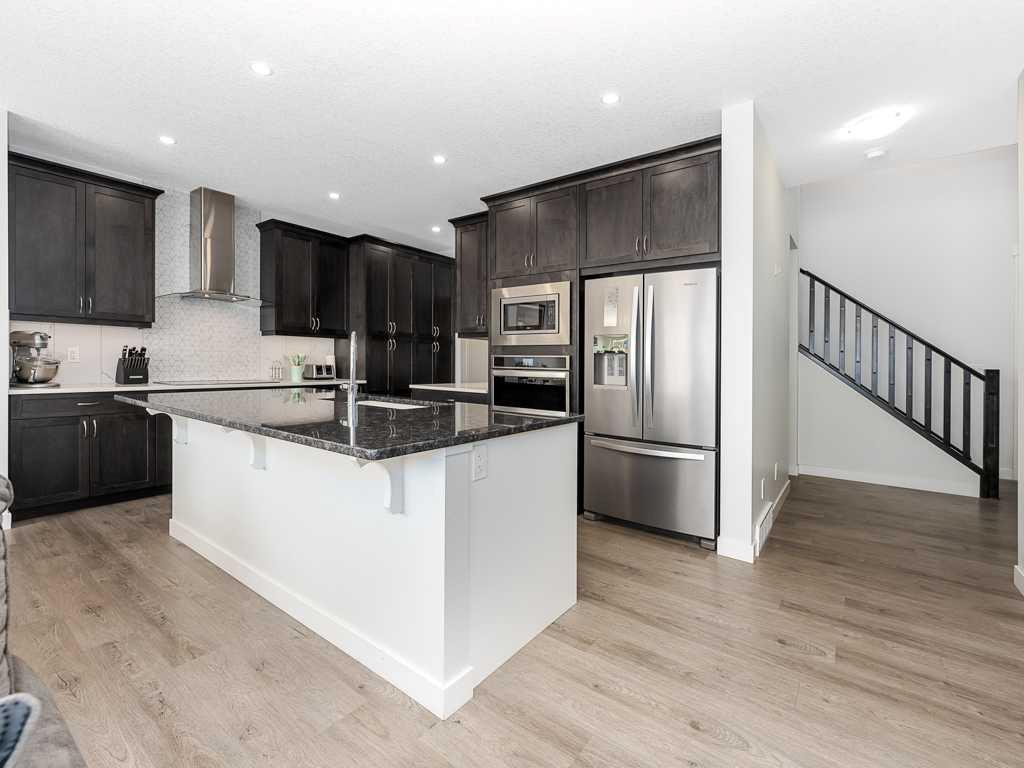 ***OPEN HOUSE November 9 from 12pm - 3pm*** Discover the perfect blend of luxury and convenience in the sought-after community of Midtown. This exquisite home offers a blend of elegance and modern functionality, with LVP flooring throughout the main floor and soaring 9-foot ceilings, creating a spacious and inviting atmosphere. The main floor includes a den/tech area adjacent to the front entry, a 2-piece powder room and a convenient mudroom between the kitchen and garage. For the culinary enthusiast, the kitchen includes a large island, stainless steel appliances, built-in oven and microwave, electric cooktop, and extensive counter space with floor to ceiling pantry storage. Quartz countertops and undermount sinks in both the kitchen and bathrooms, with soft-closing drawers add a touch of refinement. Enjoy the cozy ambiance of a gas fireplace with a floating wood mantle in the family room. The upper level offers a thoughtful design with three generously sized bedrooms, and a 4-piece bathroom for shared use. The primary bedroom is a true retreat, featuring a spacious 5-piece ensuite for your relaxation and privacy. A central bonus room provides the perfect sitting area, ideal for a family lounge, a kids’ play area, or a peaceful reading nook. This versatile space enhances the home’s layout, providing a cozy spot for everyone to gather. There is also a laundry room conveniently located on the upper floor. Step outside onto the deck and enjoy the sunny southern exposure and privacy of a fully landscaped and fenced backyard. With an oversized garage (21’x24’), you will have ample space for vehicles and storage. Discover a world of possibilities with this spacious unfinished basement, offering a blank canvas ready for your personal touch. With clear 9-foot ceilings and a completely open layout free from posts or obstructions, this space allows for maximum design flexibility. Unlock the potential of this versatile area and transform it into the basement of your dreams. Situated in a prime location, this home provides easy access to a variety of amenities, multiple schools, regional pathway system, green spaces, and the downtown core making it an ideal choice for a family friendly residence. Do not miss the opportunity to make this exceptional property your own!