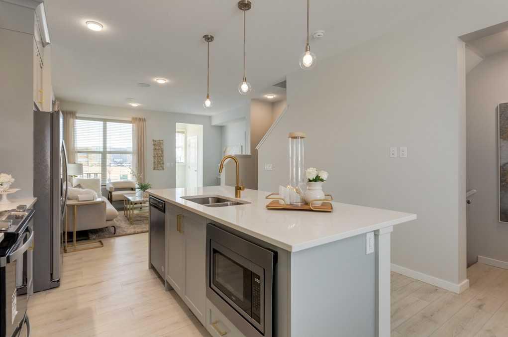 NO CONDO FEES! Discover the perfect blend of style and affordability in this charming two-story end-unit townhome located in the vibrant community of Legacy. Ideal for first-time buyers or those looking to downsize, this home offers modern amenities without the burden of condo fees. The open-concept main floor is designed to impress, featuring a gourmet kitchen with quartz countertops, upgraded cabinetry, a chimney hood fan, and a built-in microwave. Picture yourself enjoying your morning coffee at the kitchen island breakfast bar, followed by relaxing afternoons on your private rear patio. Outside, the parking pad with alley access provides ample space and the potential for a future garage, man cave, or workshop. Upstairs, the thoughtfully designed layout offers comfort and convenience. The master bedroom is a private retreat, complete with a 3-piece ensuite and a walk-in closet. Two additional bedrooms offer versatile spaces for family, guests, or a home office. The 3-piece main bath, also featuring quartz countertops, adds a touch of elegance. A second-floor laundry room enhances your daily living experience with added convenience. This Homes by Avi Indigo Model end-unit townhome is filled with natural light and carefully crafted details that elevate everyday living. Nestled in the lively community of Legacy, this home isn’t just a place to live—it’s a place to thrive. Legacy’s established schools, parks, playgrounds, and convenient transportation options make it an ideal spot for first-time homeowners and growing families. With possession set for Spring of 2025, celebrate the changing seasons in a home that’s as charming as it is functional. Don’t miss out on this opportunity to make the Indigo model your own!