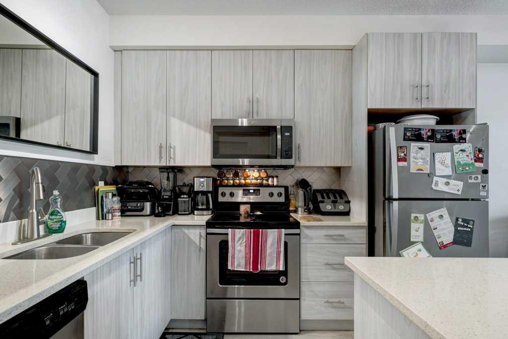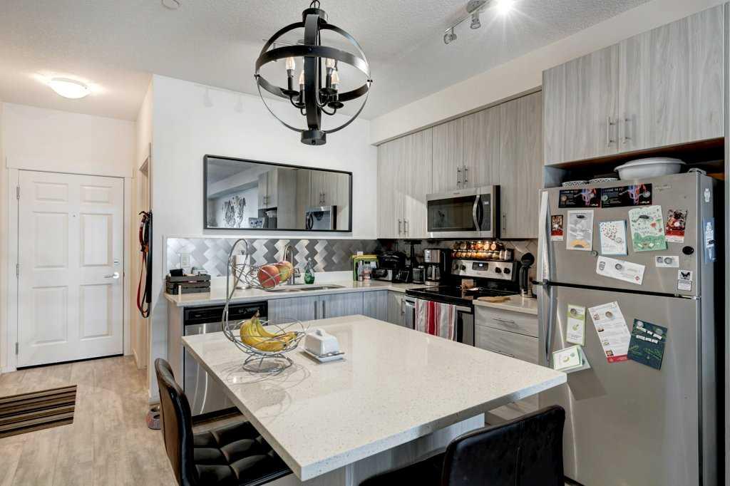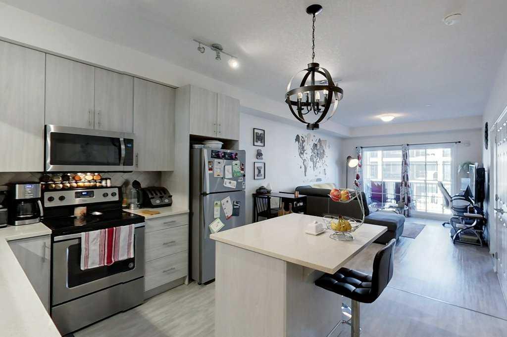 This beautiful west facing 2-bedroom, 771 square foot condo is located on the 2nd level of the pet-friendly building of Legacy Gate! The spectacular condo features 9 foot ceilings, luxury laminate flooring in the kitchen and main living area, an open floor plan with 2 large bedrooms, 2 full bathrooms, living room and space enough for a dining room table. The primary bedroom leads into a walk-through closet and a 4-piece ensuite bathroom. The secondary bedroom can serves as both a bedroom or as a flex space/game room as shown in photos with double closets for extra storage! The modern gourmet kitchen has a large pantry, kitchen island, granite countertops and contemporary gray cabinets. There is also plenty of storage space, convenient in-suite laundry and off the living room is an oversized balcony. The unit includes your own titled surface parking stall and an assigned storage locker and the low condo fees includes all of your utilities other than electricity! Located in Legacy Park, this home is conveniently located close to everything you need including shopping, restaurants, medical, schools and parks!