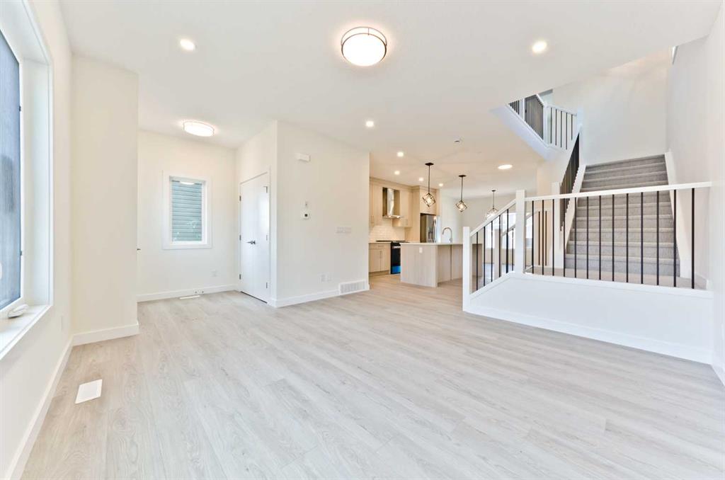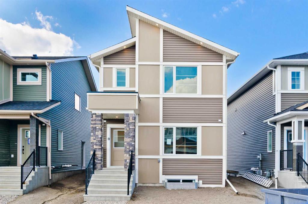 Welcome to this brand new 1622 sq ft home Situated in Midtown of Airdrie with all the warrantees. This home offers a harmonious blend of comfort, functionality, and modern design. Chefs dream Kitchen boasts contemporary cupboards that extend to the ceiling, lights highlighting the Quartz island, chimney hood fan with gas stove and builtin microwave, pantry, STAINLESS appliances all looking out a BIG window into your backyard to watch the kids play. The upper floor features 3 bedrooms, including a spacious master bedroom with a walk-in closet, and a 3 pc ensuite. A practical floorplan & upgraded beautiful finishing touches. This floor also includes a good-sized laundry area with storage space. The other 2 bedrooms are generously sized with big windows. Rarely available in Airdrie, unfinshed BASEMENT with a side entry and three big windows could be ideal for an in-law suite, making this property a fantastic opportunity for investors or first-time home buyers. Enjoy the convenience of the concrete pad at the back, providing ample space for vehicle parking. Steps away from a pond, pedestrian bridge, and nearby shops; Airdrie is conveniently located: Less than 20 minutes from Calgary airport; Less than 10 minutes from the QE II highway; Approximately 15 minutes from north Calgary. Don’t miss the opportunity to make it yours!