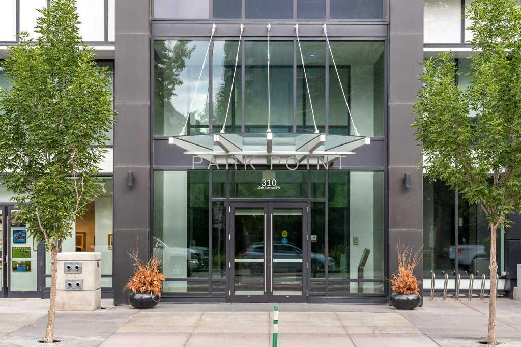 **OPEN HOUSE - NOV 24TH 1-3 pm.** Welcome to luxury living at the prestigious Park Point building, nestled in Calgary's vibrant Beltline community. This stunning 2-bedroom, 2-bathroom corner unit features an open-concept kitchen, living, and dining area with soaring 9-foot ceilings and floor-to-ceiling windows, offering unobstructed views of Central Memorial Park and the northwest cityscape. The modern kitchen boasts high-end finishes, including panelled fridge and dishwasher, stainless steel gas cooktop and oven, an oversized island, and a designated coffee bar, perfect for the at-home barista. With updated light fixtures and air conditioning throughout, this condo exudes both comfort and elegance. The spacious primary bedroom is a peaceful retreat with a walk-through closet leading to a luxurious 4-piece ensuite. The second bedroom is well-appointed with access to a 3-piece guest bath, making this space ideal for hosting visitors. A separate office/den with a window overlooks the park, providing the perfect backdrop for productivity. Step out onto the northwest-facing balcony to enjoy the sweeping views, or simply relax in the expansive living area filled with natural light. Additional features include in-suite laundry, heated underground titled parking, visitor parking, and a separate storage locker for all your needs. Residents of Park Point enjoy an array of first-class amenities, including a fitness center, sauna/steam room, a zen garden courtyard, communal BBQ area, and a stylish party room. With 24-hour concierge and security, as well as three elevators ensuring easy access at all times, convenience is paramount. Located just steps away from Bar Chouette, Deville Coffee House, the Beltliner diner, and Central Memorial Park, this condo offers quick access to the CTrain and is perfectly situated between the popular 17th Avenue and Stephen Avenue. Experience sophisticated urban living at its finest in this exceptional downtown Calgary condo.