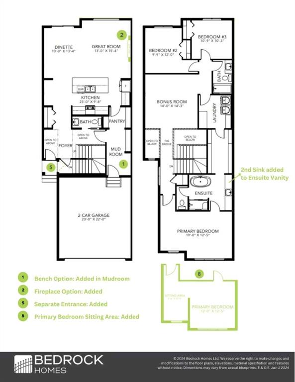Welcome to the Hadley by Bedrock Homes, where modern design meets everyday convenience. This open-concept home boasts 3 spacious bedrooms and 2.5 baths, including a luxurious primary bedroom with a vast walk-in closet featuring upgraded shelving and a 5-piece ensuite with dual sinks, a walk-in shower, and a free-standing tub. The thoughtfully designed second floor offers a walk-through laundry room that connects directly to the primary walk-in closet. Downstairs, a separate entrance and 9’ basement ceilings provide versatility and potential. The mudroom is equipped with an organizer bench, shelf, and hooks for optimal storage. The gourmet kitchen is a chef's dream, with quartz countertops, and soft-close doors and drawers. The living room is enhanced by a 50" linear LED electric fireplace, while modern smart home technology throughout ensures comfort and efficiency. Photos are representative