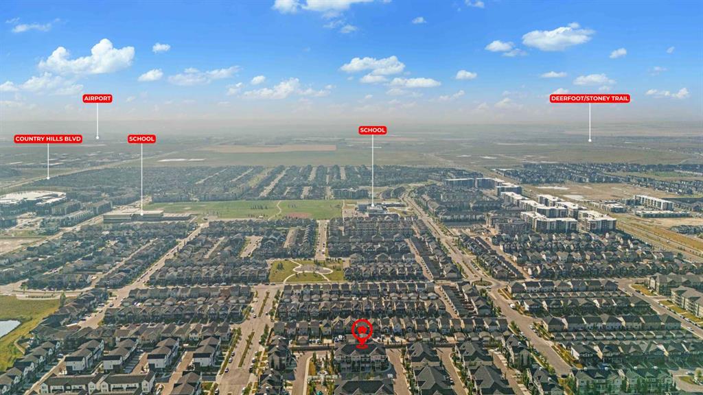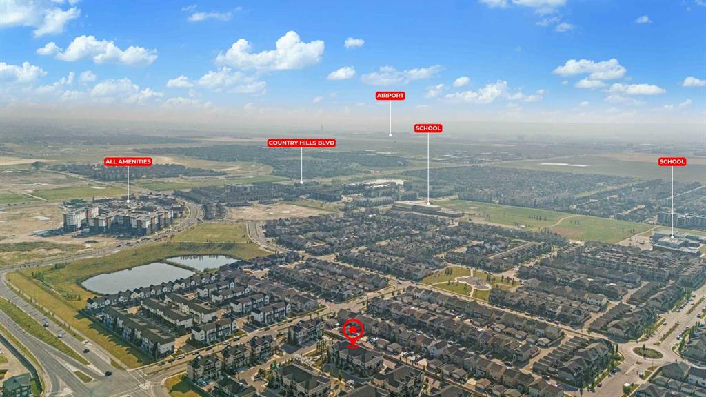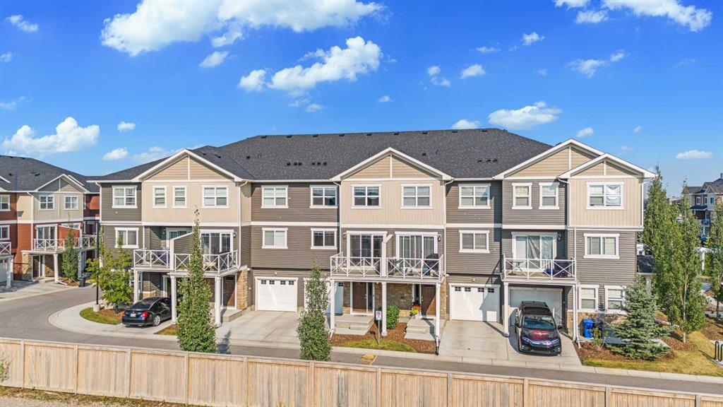 Welcome to this gorgeous 3-storey, 2-bedroom, 2.5-bathroom freshly painted townhouse in the highly sought-after community of Skyview Ranch. Perfect for first-time homebuyers, this home offers modern living with convenience and style. As you step inside, you’ll be greeted by a spacious foyer on the main level, leading you up to the first floor where a contemporary kitchen awaits. Featuring stainless steel appliances, ample modern look cabinetry, and a central island, the kitchen is perfect for cooking and entertaining. The large dining and living area on this level opens to a balcony, complete with a BBQ gas line & AC Rough-in—ideal for summer evenings. On the upper floor, you’ll find a serene primary bedroom with a 4-piece ensuite and walk-in closet with expensive built-in shelves, as well as a generously-sized secondary bedroom. Both bedrooms boast large west-facing windows that flood the space with natural light. A common 4-piece bathroom and convenient laundry area complete this level. The home also includes a 1-car attached garage and an additional driveway parking spot for one additional car. Situated with easy access to Stoney Trail, 60 Street, and 128 Avenue, this location ensures you’re well-connected to the rest of the city. Plus, you’re just moments away from playgrounds, schools, shopping centers, and the airport. This property is a perfect starting point for your real estate journey. Don’t miss out—book a showing today, because this one won’t last long!