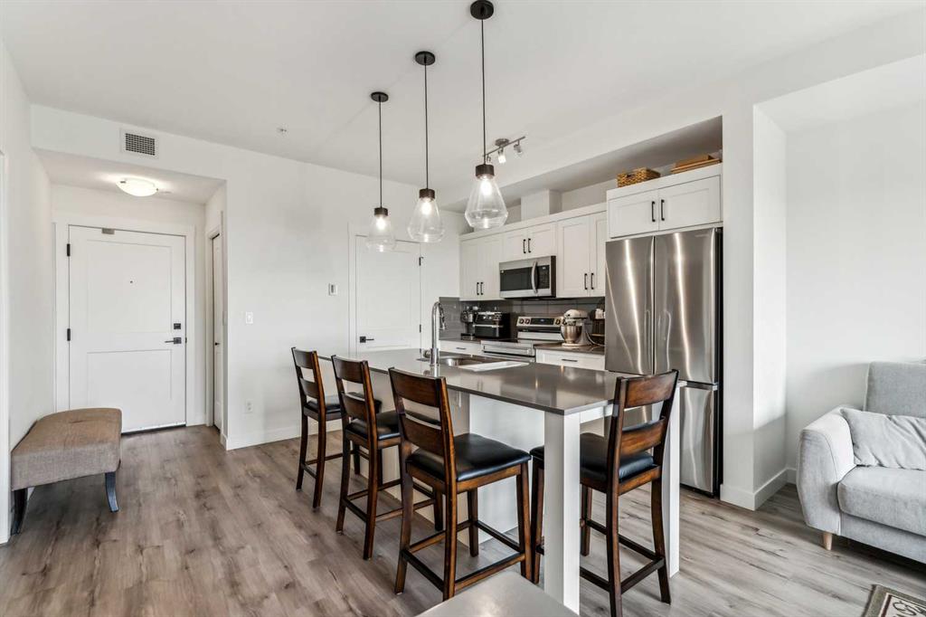 This Fantastic second floor unit presents an incredible opportunity for the discerning first-time buyer or the astute investor. Nestled in the lively and bustling Seton community, this home offers a spacious and light-filled ambiance that is truly exceptional. The upgraded kitchen takes center stage, complete with raised upper cabinetry in stunning white, exuding an air of sophistication while providing ample storage space for all kitchen essentials. The elegant backsplash adds a touch of elegance, while the Whirlpool stainless steel appliances offer both style and functionality. The capacious center island is perfect for preparing meals, leisurely dining, or hosting family gatherings. The main living area offers an expansive footprint that is perfect for entertaining loved ones. The wall-to-wall windows provide a constant stream of natural light, perfectly balanced by an efficient air conditioning system. The generously sized private patio offers a blissful respite after a long day. The secondary bedroom is an attractive space for a home office or a welcoming guest room. The well-appointed 4-piece bathroom is conveniently located nearby, making it highly accessible for guests. The primary bedroom is a sight to behold, featuring breathtaking east and south windows. The large walk-in closet offers abundant storage for all clothing and accessories. The sumptuous 4-piece ensuite features double sinks and a commodious walk-in shower, enrobed in luxurious glass doors. Additional noteworthy features include the in-suite laundry, the titled underground parking that ensures the safety and security of your vehicle, and the convenient storage locker, providing ample room for all belongings. Topping it all off, this second-floor unit provides living at its finest, within walking distance to a plethora of lifestyle amenities, such as shops, restaurants, schools, the South Health Campus, the South YMCA, and so much more. Don't let this opportunity slip away; schedule a viewing today and make this incredible condo your very own