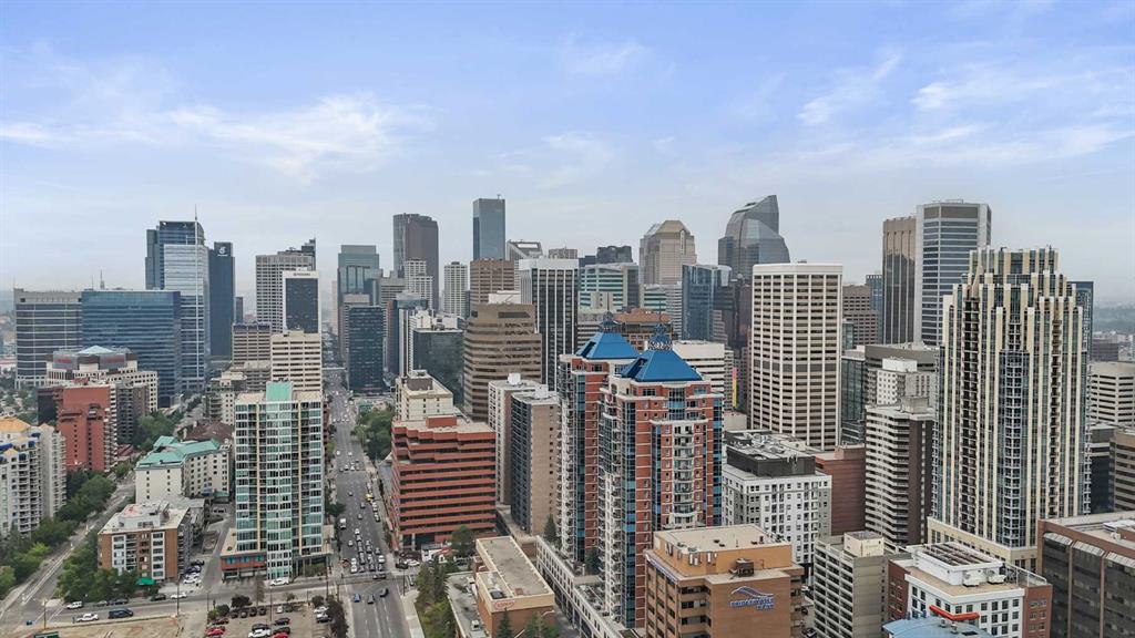 Welcome to FIVE WEST PHASE II, an esteemed condo tower in one of Calgary's most coveted residential buildings! This unit offers breathtaking south-facing city views from the kitchen, living room, bedrooms, and dining area, encapsulating the essence of luxury living in a LA CAILLE building. This well-designed unit features a spacious, open-concept layout with two generously sized bedrooms, a small den, and two bathrooms, including an ensuite with a walk-in closet. Additional conveniences include heated parking, in-suite laundry, and a storage locker.Ideally situated, this condo is just steps from the Bow River Pathway System, a short distance to your downtown office, shopping, restaurants, Kensington, two blocks from the LRT. Upgrades in this unit include a gas fireplace, hardwood floors, solid maple cabinets, central A/C, acoustic soundproofing, and commercial-grade UV-protected windows. The building offers exceptional amenities such as daily concierge service, visitor parking, dry cleaning services, and a party room. Experience the best of downtown living in one of Calgary’s premier high-rises—perfect for investors, first-time home buyers, or downtown executives!