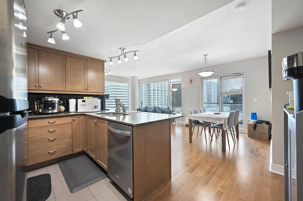 Public Remarks Welcome to FIVE WEST PHASE II, an esteemed condo tower in one of Calgary's most coveted residential buildings! This unit offers breathtaking south-facing city views from the kitchen, living room, bedrooms, and dining area, encapsulating the essence of luxury living in a LA CAILLE building. This well-designed unit features a spacious, open-concept layout with two generously sized bedrooms, a small den, and two bathrooms, including an ensuite with a walk-in closet. Additional conveniences include heated parking, in-suite laundry, and a storage locker.Ideally situated, this condo is just steps from the Bow River Pathway System, a short distance to your downtown office, shopping, restaurants, Kensington, two blocks from the LRT. Upgrades in this unit include a gas fireplace, hardwood floors, solid maple cabinets, central A/C, acoustic soundproofing, and commercial-grade UV-protected windows. The building offers exceptional amenities such as daily concierge service, visitor parking, dry cleaning services, and a party room. Experience the best of downtown living in one of Calgary’s premier high-rises—perfect for investors, first-time home buyers, or downtown executives!