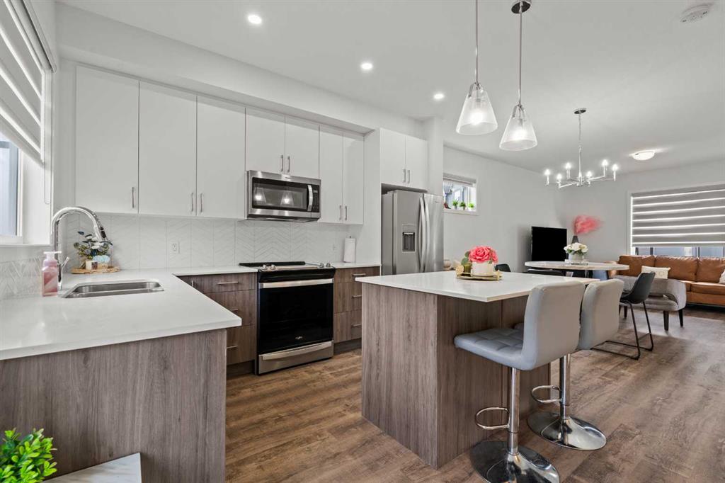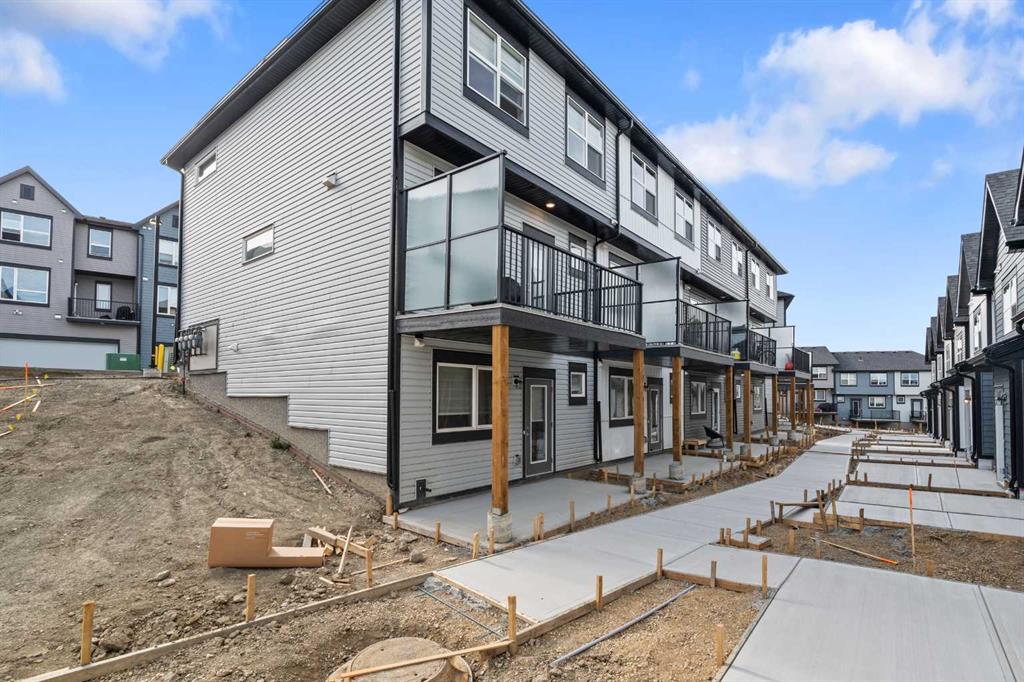 END UNIT | FULLY DEVELOPED WALKOUT BASEMENT | 4 BEDROOMS | Welcome to this spacious 2024-built townhome in the desirable community of Evanston. The main floor features an open-concept layout with a well-appointed kitchen, boasting abundant cabinetry, ample counter space, an island, and direct access to a private balcony. The living room is generously sized, perfect for entertaining. Upstairs, you'll find a versatile landing area with a built-in desk. The primary bedroom offers a luxurious en-suite bathroom and a walk-in closet. There are two additional bedrooms and a full bathroom on the upper level. What sets this house apart from most other townhomes is the finished walkout basement, which is perfect for growing families or as an investment opportunity; featuring one bedroom, a full bathroom, a spacious living area, and a convenient kitchenette. Two assigned parking stalls are directly in front of the property. Located just minutes from Stoney Trail, with schools, parks, and shopping nearby. Landscaping with an underground sprinkler system is currently being completed by the developer. Don’t miss out on this exceptional property!