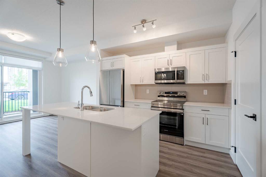 Welcome to Seton West, a Brand New complex in the Sought after SE Community of Seton. This gorgeous 2 Bedroom, 2 Bathroom unit has all the bells and whistles from Quartz countertops, Vinyl flooring and stainless appliances to In-unit Laundry, high-end window coverings and AC! The Primary bedroom is light and spacious with a 4pc ensuite. The second bedroom is also a generous size and can double as a home office. Unit 1110 is conveniently located on the ground level with second access to unit from covered deck (12'4X6'4) featuring gas BBQ line. This unit also comes with a titled parking stall in the underground parkade and an additional storage locker. Amazing location near the South Health Campus, schools, shopping and other amenities, with Incredible access to both Deerfoot and Stoney Trails. Immediate possession is available…Book your personal tour today!!