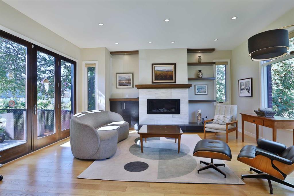 Here in the exclusive established community of Wildwood is this exquisitely appointed split-level home, located on a sprawling corner lot only minutes to Edworthy Park, neighbourhood schools & shopping. Beautifully renovated contemporary home offering a total of 5 bedrooms, hardwood floors, fully-loaded custom kitchen with top-of-the-line appliances, oversized heated 2 car garage & over 2700sqft of development over 4 levels of refined living. Ground level has an inviting entry complemented by glistening tile floors & plenty of closet space. Hardwood-clad stairs take you up to the next level & into the heart of your new home…a breathtaking open concept space with an expansive dining room with big picture window & stunning living room addition with 10ft ceilings, remote-controlled Valor gas fireplace accented by built-in shelving & garden doors to the private South-facing deck. The showpiece designer kitchen is a sight-to-behold…grand & modern featuring 9ft granite-topped island with veggie sink, custom cabinetry – including 7ft built-in pantry with pull-out storage & 2 Lazy Susans, undercabinet lighting & stainless steel appliances including 42inch Jenn-Air fridge, Gaggeneau chimney hoodfan & Miele induction cooktop, built-in convection oven & new (2022) dishwasher. There are 3 bedrooms & a renovated full bath with double vanities on the top level, & all the bedrooms have hardwood floors & ample closet space. The private owners’ retreat is on the ground level & enjoys 2 large closets & sleek soaker tub ensuite with heated floors, separate shower & quartz counters. The 4th level – with its oversized windows, is finished with large family room with another remote-controlled Valor fireplace, 5th bedroom (or office) with huge adjoining walk-in closet/storage room & laundry/storage with Miele washer & dryer. A mudroom – complete with built-in bench & cabinets, leads to a 2nd backyard deck, patio & the detached 2 car garage…heated & oversized, 200amp electrical panel to accommodate a charging station for your future electric car, 9ft ceilings with skylights & 8ft high garage door. Additional improvements & extras in the 2014-renovation include dual-pane/low-E windows, furnaces & electrical panel, PEX water pipes, central vacuum system, sewer service with new backflow valves & new roof on both the house & garage plus welded membrane on the living room addition. There’s also an AquaMaster Pro water softener, new hot water tank in 2022, Ecobee thermostat & custom high-end 2-way blinds. Prime location on this private 80ft wide corner lot shaded by towering mature trees (highlighted by a huge blue spruce & 2 weeping birch) in this mature family community only minutes to Edworthy Park & off-leash parks, with quick access to Sarcee & Bow Trails to take you to the Westbrook LRT & shopping, nearby medical clinics, library & downtown. A not-to-miss opportunity to make your dream home a reality!