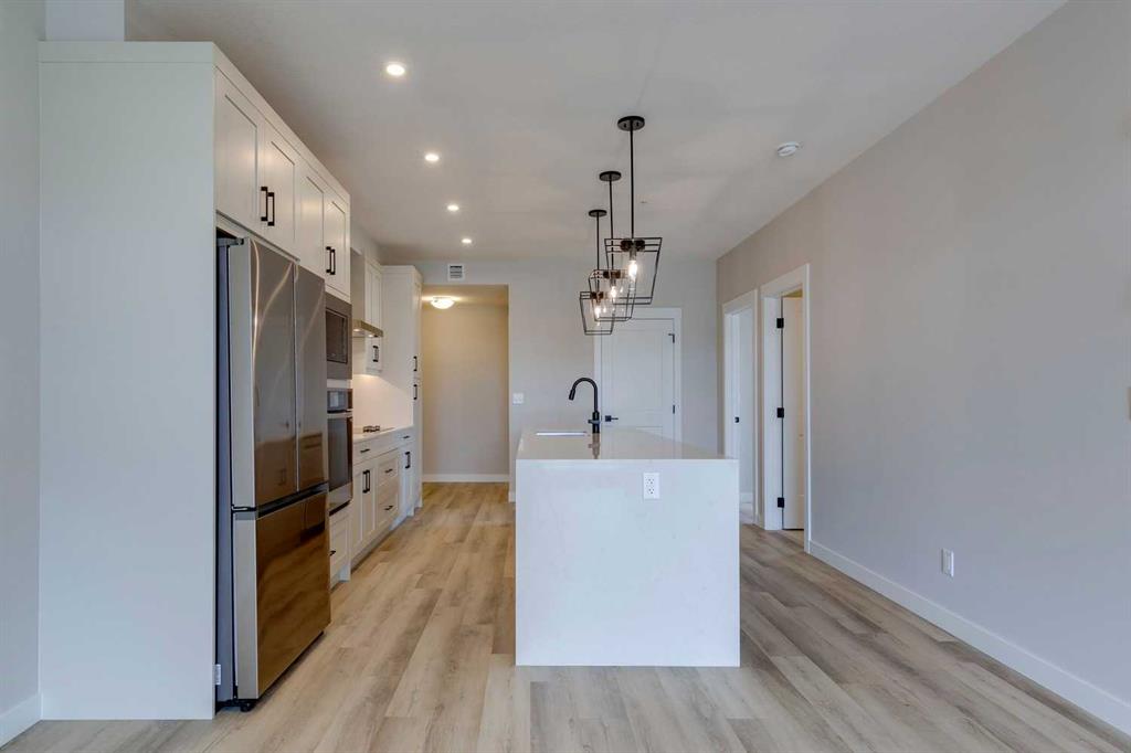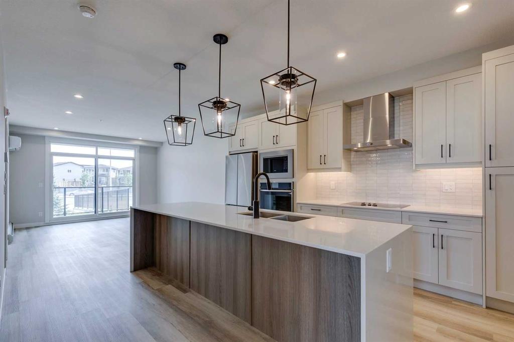 Logel Homes proudly presents its latest award-winning development in the vibrant community of Livingston, recognized for its exceptional design and prime location near shopping and scenic nature paths. As the Multi-Family Builder of the Year for the past three consecutive years, Logel Homes offers this thoughtfully designed two-bedroom, two-bathroom unit, complete with underground titled parking for added convenience. The interior features 9' ceilings, creating a spacious and airy feel throughout. The modern kitchen is equipped with stainless steel appliances, including a wall oven, chimney-style hood fan, built-in microwave, 41” high upper cabinets, and under-cabinet lighting. Upgraded finishes, such as quartz countertops, luxury vinyl plank and tile flooring, and designer sinks and fixtures, elevate the living experience. Large windows, upgraded lighting, and the soaring 9' ceilings brighten the living areas. Both bathrooms are elegantly finished, with a fully tiled shower in the ensuite and a tiled tub/shower combination in the main bath. Additional amenities include a walk-in closet in the master bedroom, a full-size washer and dryer, air conditioning, and a large patio with a BBQ gas line.