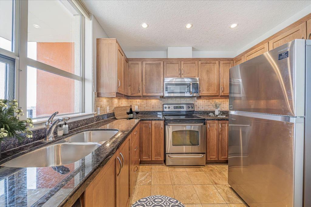 Public Remarks Amazing daytime and evening city views from the 25th floor! Whether you are a couple searching for a unique living space or single who enjoys entertaining. This 840 sq ft living space on one level is a "must see" . It is a bright and sunny corner unit, is well maintained and managed, has 24 hour security, comes with a parking stall and underground secure parking space for your quests. Condo fee $599.00 / mth. ALL UTILITES INCLUDED : HEAT, WATER & ELECTRICITY! Open concept living with high ceilings & floor to ceiling windows. If you enjoy cooking & entertaining, this is the place for you. The kitchen has granite countertops, under counter lighting and a breakfast bar. Access to a spacious balcony w/gas outlet for the barbecue. The kitchen has loads of cupboard space/ storage, undercounted lighting and stainless steel appliances. Added features include marble tile in the foyer, kitchen and bath area, dining area. Primary bedroom has a walk in closet w/in suite laundry and 4 pc bath with upgraded stone tile surround.. In-floor electric outlets throughout the main living area are an added bonus. The underground heated parking stall ensures you won't be scraping the snow off your car this winter. Parking for your guests? No problem, there is ample visitor underground, secure parking available. Throw away your gym membership as this building has a fully equipped gym for your unlimited use. Don't worry about security in the inner-city? The Vantage Pointe has 24/7 security! Now Let's Talk About The Location... In The Heart of the Beltline. Walking distance to retail shopping on 17th Ave, Co-op Grocery Store, and amenities the Community has to offer. Schools, medical offices, parks, playgrounds and access to transit. Minutes from the downtown core. This Condo corporation is well managed. Don't miss seeing this one.