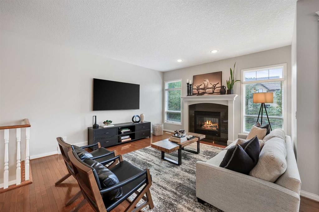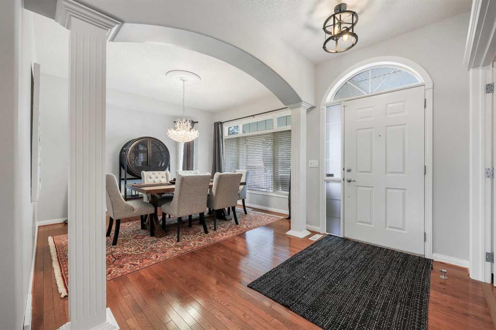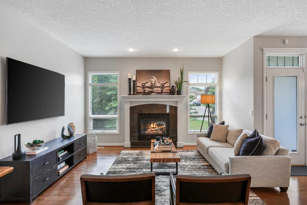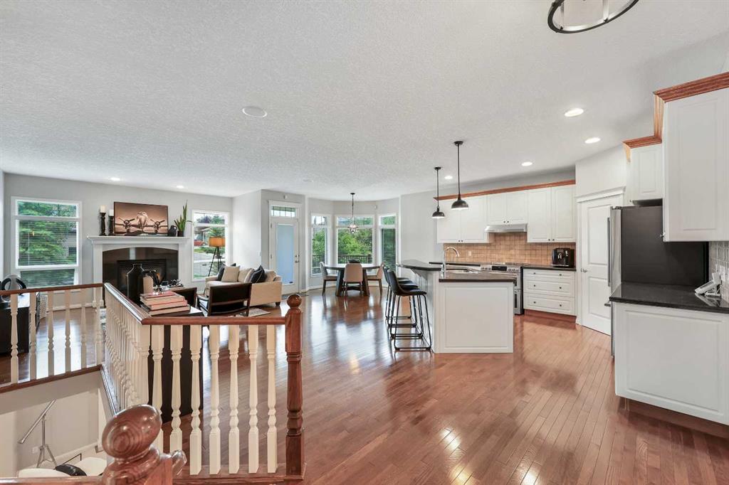 Experience Elegance in Hamptons: Your Dream Bungalow Awaits! Seize this rare opportunity to own a beautifully upgraded bungalow in the highly sought-after Hamptons estate community. This exquisite, air-conditioned home boasts: • Gleaming Hardwood Floors & Soaring 9ft Ceilings: Enjoy a luxurious feel throughout the home. • Spacious 3 Bedrooms + Den: Perfect for family living or a home office. • Open Concept Kitchen: Features granite counters, a large center island, and a walk-in pantry. Equipped with upgraded stainless steel appliances, this kitchen is a chef’s dream. • Elegant Living Spaces: Cozy up by the fireplace in the expansive living room, host dinners in the formal dining room with graceful columns, or enjoy casual meals in the dining nook that opens to the renovated backyard deck. • Private Master Retreat: Includes a walk-in closet, jetted tub ensuite with granite-topped double vanities, skylight, and a separate shower. • Finished Lower Level: Offers 2 additional bedrooms, a full bath, a games/rec room with fireplace and wet bar, plus ample space for future development and storage. • Bonus Features: Main floor office with French doors, built-in speakers, and underground sprinklers. The main floor laundry includes a GE washer/dryer and sink. The oversized 2-car garage and fantastic outdoor space with a covered deck (gas BBQ line) and patio complete the package. Located in a prestigious golf course community, you’ll be within walking distance of bus stops, the golf course clubhouse, and close to amenities including Hamptons School, parks, and shopping. Welcome to your new home in the heart of luxury and convenience!