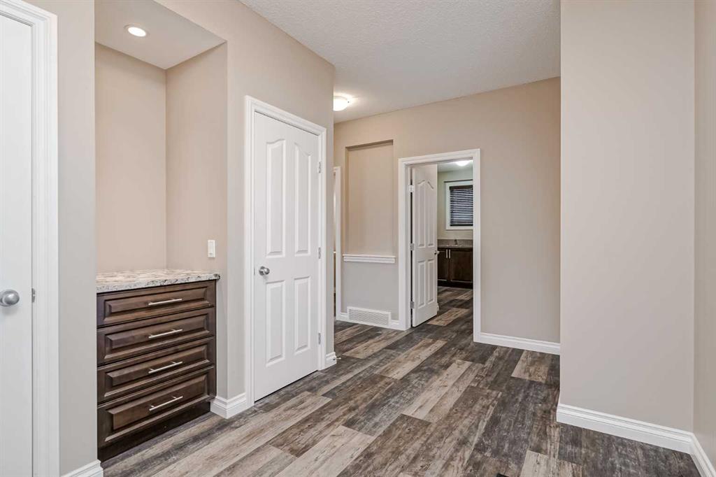 Welcome to this stunning 2-story home in the highly desirable community of Evanston, offering over 3,669 square feet of meticulously developed living space. Step into an impressive main level, featuring stylish vinyl plank flooring and a bright, open layout. The living room boasts a wood-burning fireplace adorned with exceptional stonework, a charming mantle, and thoughtfully designed alcoves. The kitchen is a chef’s delight, showcasing luxurious granite countertops, high-end cabinets, and an expansive island perfect for entertaining. A convenient walk-through pantry connects the kitchen to the mudroom, making it ideal for busy families. The primary bedroom is a serene retreat with a massive walk-in closet, and a vaulted spa-like 5-piece ensuite bathroom complete with a soaking tub. The upper level also offers a huge vaulted bonus room, perfect for large families, along with three generously sized bedrooms, each with its own walk-in closet, and an additional 4-piece bathroom. The fully developed basement adds even more living space, featuring a 4th bedroom, a bathroom, a den, a wet bar, and a large recreation room perfect for entertaining guests. Outside, you’ll find a spacious backyard with a maintenance-free deck, ideal for relaxing and enjoying the outdoors. This well-cared-for, immaculate home has been freshly painted and loaded with custom upgrades. Steps from a playground and minutes away from new elementary schools and shopping. Don’t miss the opportunity to make this your dream home. Book your private showing today or explore the 3D tour online!