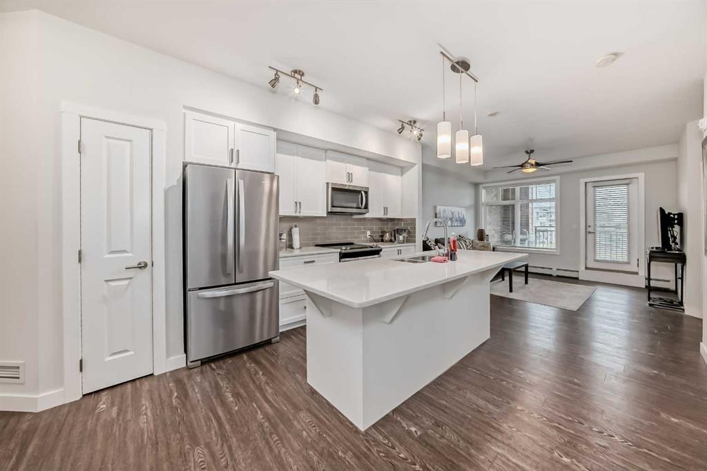 Welcome to your new home in the dynamic community of Sage Hill. This charming residence with a titled underground parking, a private balcony and a delightful patio offers a stylish and functional layout, featuring 2 bedrooms and 2 bathrooms for optimal privacy and comfort. Upon entering, you'll be greeted by an open floor plan that radiates light and space, thanks to large windows that brighten the entire living area. The kitchen is a chef’s dream, equipped with elegant white cabinetry, gleaming quartz countertops, and a central island that serves as the heart of the home. Prepare to whip up delicious meals and create lasting memories! From the living area, step out onto your private balcony—a perfect spot for enjoying tranquil mornings or entertaining friends and family in the evenings. The primary bedroom is a luxurious retreat, featuring a 4-piece ensuite adorned with designer backsplash, double vanity, and quartz countertops. The primary bedroom opens itself to a well-sized patio, making it ideal for outdoor hangouts, and entertainment. The second bedroom offers versatile usage as either a guest room or a home office, complemented by a nearby four-piece bathroom that provides both privacy and convenience. For added ease, in-unit laundry facilities are included. Embrace a vibrant lifestyle in Sage Hill with this thoughtfully designed home that combines modern amenities with a welcoming atmosphere. Act fast and schedule a viewing today!