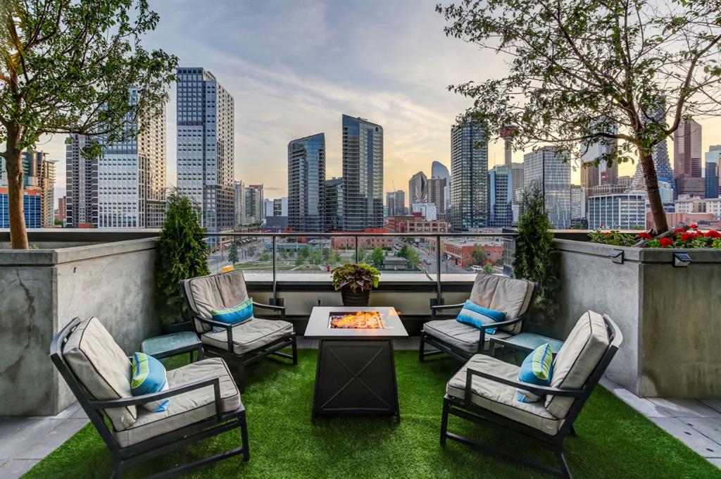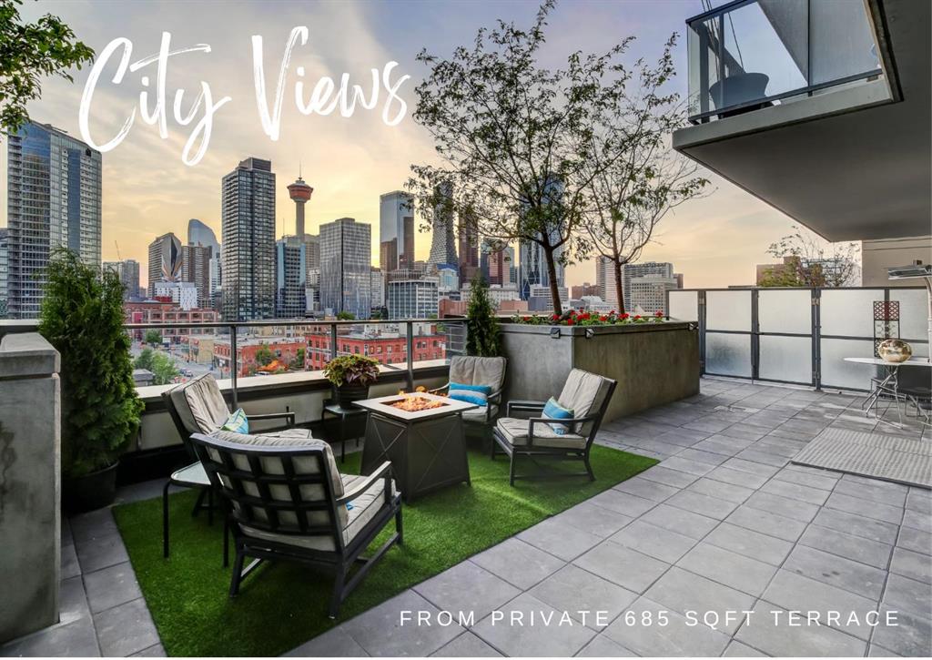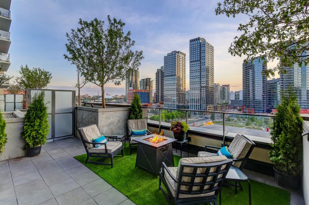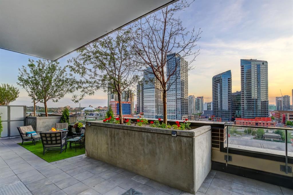 BLACK FRIDAY SALE PRICING - Love living downtown but missing the outdoor space? This SW corner terrace unit has it all; a rare find wrap around 685 sqft terrace with an incredible view of downtown. This corner layout has everything that you need. 7th floor features 10’ ceilings, offering the feeling of spaciousness & bright floor-to-ceiling windows bring the outside in. Sleek modern kitchen with built-in appliances, quartz countertop, and a microwave shelf to free up your counters. Upgraded closet built-ins in primary bedroom to maximize your space in condo living, primary with 4 pc ensuite. Titled indoor tandem parking is rare to find, located on the 4th level above ground, next to elevator doors with natural light coming into the parkade through shaded windows. Perfect location for the urban professional, walking distance to Saddledome, pathways, downtown, c-train, shops, restaurants & all amenities.... The Guardian features a concierge, fitness centre, social lounge, workshop, common area garden terrace with BBQ, and visitor parking. The lounge can be booked for private functions & features two TVs, a ping-pong table, a large dining table, comfortable couches, kitchen with full-size fridge, sink, microwave and plenty of counter space. The gym is located directly below the unit & parking is just 3 floors below. Don’t like waiting for an elevator? No problem, just walk down (or up) directly outside. Don’t miss the opportunity to enjoy the garden terrace!