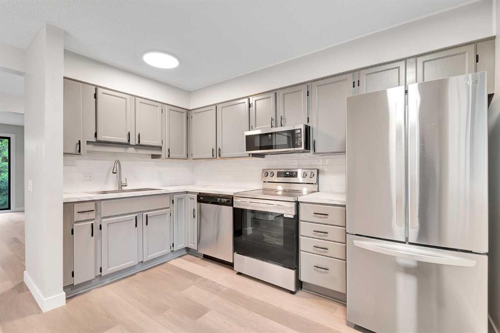 Welcome to this Fully Renovated 2 Storey Townhome in the desirable community of Braeside, close to all amenities, including Shopping, Schools, Parks, Recreation Facilities, Southland Leisure Centre, South Glenmore Park, Public Transportation, Southland Drive, 14th Street, Stoney Trail and more. This unit has been completely repainted, new furnace installed in the spring, all new flooring, lighting, closet doors, baseboards, fireplace refaced, new stainless steel appliances, both bathrooms upgraded and new countertops in kitchen and back splash. The main floor level features new luxury vinyl plank throughout, , upgraded kitchen, dining room open to living room with a wood log lit fireplace, and a 2-piece bath. The upper level has brand new carpets, good size primary bedroom with plenty of closet space, 2nd & 3rd bedrooms, and a renovated 4-piece bath. The lower level is unspoiled and waiting for your development. Fully fenced backyard with low maintenance landscaping. This unit also has a double tandem parking pad in front. Call today for your private viewing
