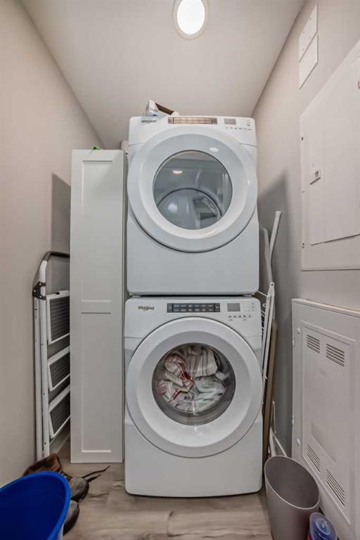 Vacant unit - This 2 bedroom home in Shawnee Slopes could be yours! Not only do you have patio access but AC to keep you cool on those hot summer days. Enjoy this 2 bedroom condo with full-sized stacked laundry, gorgeous vinyl plank flooring throughout, immense kitchen cupboard space and titled parking and storage locker. This building was completed in 2022 and the location cannot be beaten - walk to Fish Creek Park, C-Train, local shops and playground. Short drive to shopping in either direction on Macleod Trail.