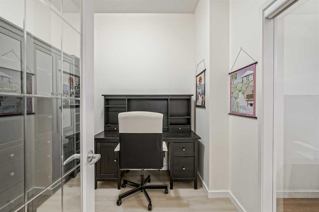 This is a fantastic opportunity to own a two-bedroom apartment in the coveted Marquis building in Calgary’s Downtown West End. It is just steps away from the Bow River Pathway, a short walk to Kensington, and easy access to the LRT line. The unit boasts 9.5 ft. ceilings with a spacious open concept living space, granite kitchen countertops and stainless-steel appliances, as well as a corner gas fireplace, capacious dining area and an awesome private terrace with BBQ gas line… not to mention the extra storage locker. The kitchen has an extended peninsula-style island with breakfast bar seating. The primary bedroom has direct, private access to the terrace, and through his & hers walkthrough closet you’ll find its ensuite bathroom with soaker tub and separate shower. Bedrooms are separated by the spacious living room which is perfect for a small family or roommate situation. Work from home with privacy in the well-sized dedicated office/den/flex room adjacent to the main living area. This could also be used as an extra bedroom for guests. A convenient oversized in-suite laundry room completes the space with plenty of extra storage for all your extras. In addition to titled secured parking, the building has underground visitor parking as well as gym, meeting rooms and an outdoor lounge area with a pergola. This home is in the heart of the city and within easy reach to the countless amenities that the Calgary core has to offer!