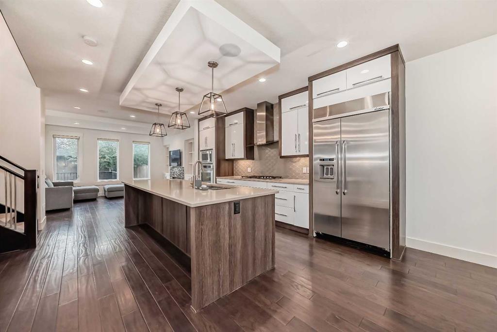 MASSIVE PRICE REDUCTION! Located on a QUIET TREE-LINED street in the heart of MOUNT PLEASANT right across from a LARGE GREENSPACE! This spectacular 4 BEDROOM, 4 BATHROOM, 2,685 sqft of luxury infill was designed to maximize sqft and provide a comfortable space while bringing in Thoughtful upgrades and sophisticated finishes. The kitchen features a LARGE KITCHEN with cabinet pullouts, QUARTZ countertops, drop-in GAS RANGE, and UPGRADED APPLIANCES. The inviting open-plan main level features large windows, high 10’ ceilings, warm engineered hardwood floors, and built-in shelving and cabinetry with clean lines and zero clutter. The main level also has a large dining room, a living room, and a separate family room as well as a mud room and formal front entrance. Rest and relax in the impressive principal suite, including a large walk-in closet with built-in organization and a spa-like ensuite bathroom. The ENSUITE has in-floor heating, double sinks, an oversized STEAM SHOWER with RAIN HEAD, BODY SPRAYS, & a separate HANDHELD! Two additional large bedrooms with a TON OF WINDOWS, a full bathroom, and an OVERSIZED LAUNDRY ROOM WITH SINK complete the upper level. The lower level has a large family room including a ROOM for an 85” wall-mounted flat-screen TV, wet bar, and flanking wine racks, ideal for entertaining, movie night, playtime, or as a fitness space. A fourth bedroom, 3-piece bathroom with a huge shower, storage room, closet, additional office space, and a utility room with storage space finish the lower level. Easily walk to CONFEDERATION PARK, several schools, green spaces, tennis courts, the OUTDOOR MT PLEASANT POOL, grocery stores, and the restaurants of 4th Street. Just five minutes to downtown and steps to some of Calgary’s most notable restaurants, cafes, and shopping. There’s easy access to YYC Airport, SAIT, hospitals, and several major thoroughfares. Don’t miss this unique opportunity to experience inner-city living at its finest!