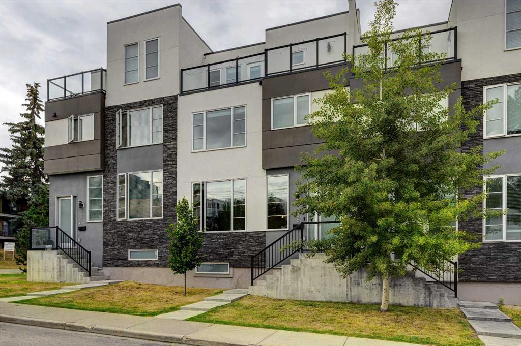 Welcome to this trendy and very well-maintained 1848 sq ft, 3-storey, 3 bedroom, 3.5 bathroom townhouse with a great layout, quality finishings and underground parking. Upon entering you are greeted with a spacious foyer with walk-in closet, and a bright living room with large south facing windows. Spacious and modern kitchen with plenty of cabinetry, quartz countertops, island seating for 3, and stainless steel appliances. The dining room with space for a table plus additional furniture is conveniently right beside the kitchen. The powder room completes the main floor. The 2nd level has 2 bedrooms, including the primary bedroom with large windows, walk-in closet, and modern ensuite with 2 sinks, quartz countertops, large soaker tub and a tiled shower with glass door. The 2nd bedroom is also spacious and is located next to the 2nd full bathroom. The laundry room with built-in cabinetry and utility room completes this level. The 3rd level hosts the 3rd large bedroom with hardwood flooring, a 3-piece ensuite, and access to the beautiful 23 ft x 8 ft south-facing sunny balcony. This level would make an amazing at home office or TV room if you do not require the 3rd bedroom. The basement level is the mudroom with storage space and access to the underground heated parkade. One parking stall (with space for storage) is included with this unit. This complex is in excellent condition and has been extremely well-maintained by the owner, who has owned all 5 units since the complex was built. Excellent inner city Bankview location with quick access to downtown, 14th Street, 17th Ave, and Marda Loop. Close to many parks including the Bankview Dog Park, Buckmaster Park and 20th Street playground. Furniture and furnishings are available for purchase. Don't miss out on this excellent opportunity to call this property your new home!