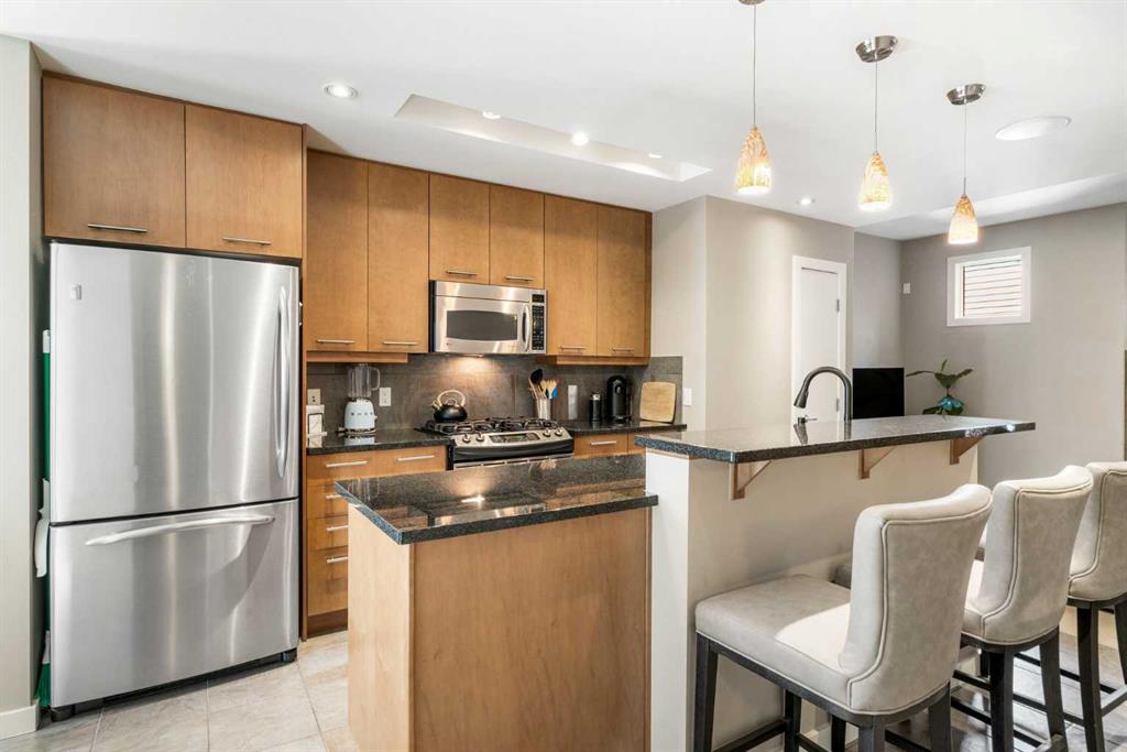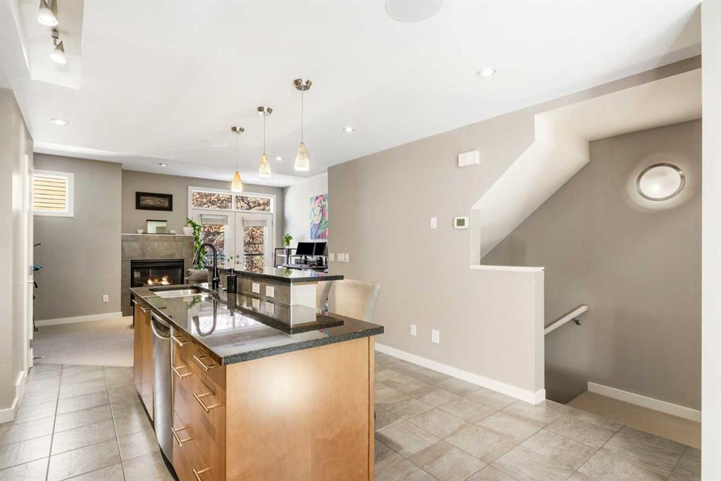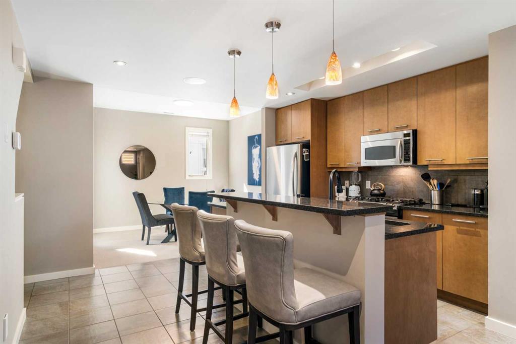 **New Price** Discover the perfect fusion of residential comfort and commercial opportunity in this impeccably maintained 1,617 sq. ft. Live/Work townhouse located in the highly sought-after community of Bridgeland. Nestled within the prestigious Olive complex, this rare gem offers up to 50% business usage, making it an ideal space for entrepreneurs or those seeking a versatile home-office environment. This unit is conveniently separated into a commercial space on the main floor with access from the back lane and a separate residential unit on the upper levels accessed by the front door making this a great opportunity for an investor as well. Step inside the front door and up stairs to experience the seamless blend of modern design and functional living. The open-concept main living space boasts a contemporary kitchen with sleek granite countertops and stainless steel appliances, an inviting dining area perfect for entertaining, and a cozy living room complete with a fireplace. The powder room adds convenience for guests. Upstairs, the master bedroom serves as a private retreat with a luxurious five-piece cheater ensuite featuring heated floors, a large oval soaker tub, and a private balcony overlooking the tranquil courtyard. The second bedroom is equally spacious and bright, with both rooms offering walk-in closets for ample storage. A dedicated laundry closet adds to the home's practicality. Ascend to your large rooftop patio, where you can soak in stunning views, including downtown views. This outdoor space is perfect for relaxing or entertaining under the Calgary sky. Enjoy the convenience of two parking spaces – a main floor garage (currently converted into additional business and storage space), and a titled underground parking stall. Additional storage is available in the unit’s parkade-level locker. Situated just minutes from downtown Calgary, The Olive offers unparalleled access to local amenities, including trendy restaurants, coffee shops & parks. With LRT and bus routes nearby, commuting is effortless. Plus, the pet-friendly policy ensures that your furry friends are welcome (with board approval). This unique property benefits from both residential and commercial zoning, providing endless possibilities for live/work flexibility. Don’t miss this rare opportunity to own a versatile and well-connected home in one of Calgary's most vibrant neighbourhoods.