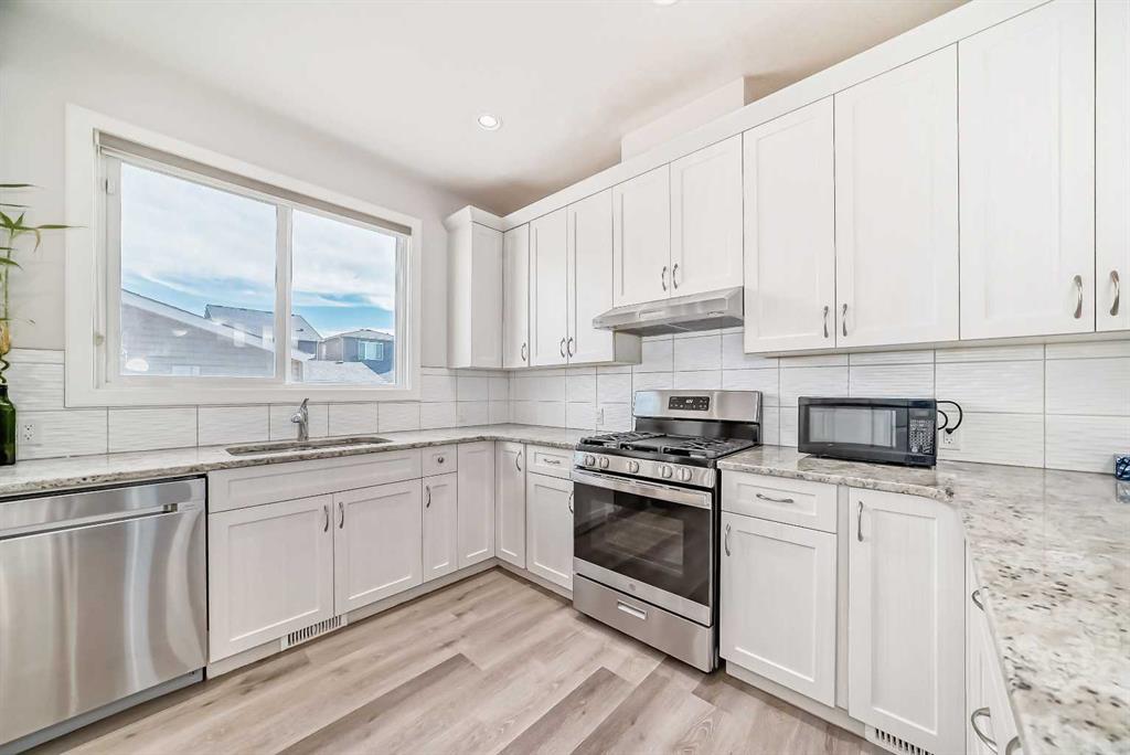 Incredible Location | South Backyard | Main Floor Bedroom And Full Bathroom | Rear Double Car Garage Detached | Upper-Level Bonus Room | Side Entry To Basement | Basement With Plumbing & Kitchen Rough-In. Welcome to your dream home in the vibrant community of Cornerstone, Calgary NE! This stunning 4-bedroom plus upper-level bonus room, 3-bathroom property offers an exceptional blend of modern living and convenience, perfect for families of all sizes. As you step inside, you’re greeted by a spacious open layout with abundant natural light, a 9 ft high ceiling on the main level and enhanced by larger windows. The main level features a well-appointed bedroom and a full bathroom, ideal for guests or multi-generational living. The heart of the home is the upgraded kitchen with granite countertops, and high-end appliances, including a smart fridge with a screen, a new gas stove, and an easy-access pantry. A unique upper-level bonus room provides additional space for relaxation or entertainment. The basement, with its side entry door, includes rough-ins for a bathroom and kitchen, making it ready for future development or a potential income suite. A secondary suite would be subject to approval and permitting by the city/municipality. Step outside to enjoy the south-facing backyard, designed for both privacy and leisure with a deck, railing, washed stone landscaping, and a fenced perimeter. The recently paved back alley leads to a double car garage, featuring an upgraded 8 ft door, extra electrical outlets, and ample street parking for visitors. Situated close to all essential amenities, including TD Bank, BMO, Chalo Freshco, Shoppers Drug Mart, Dollarama, Tim Hortons, Willowbrae Child Care, Anytime Fitness, and major grocery stores and restaurants. With easy access to Stony Trail, public transportation, school routes, and the upcoming Gurdwara Sahib location, this home offers both convenience and a strong sense of community. Don't miss the chance to make this exceptional property your own!