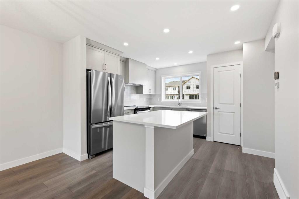 *PREMIER TOWN HOME COLLECTION*BEAUTIFUL JAYMAN BUILT NEW HOME*SOLAR & SMART TECH*NO CONDO FEES*PARKING FOR 2 CARS* This lovely 2 story townhouse features a nice open floor plan that flows smoothly into the modern kitchen with a centralized flush eating bar, Elegant Polaire QUARTZ counters, full pantry, Stainless Steel WHIRLPOOL appliances that includes a 25 cu ft French Door Refrigerator with icemaker, Broan Power Pack hood fan with shroud, built-in Panasonic microwave with trim kit and upgraded slide in glass top stove. As well as a convenient half bath + nice back entry! The 2nd level offers a Primary Suite with a private 3 piece en suite & walk-in closet along with 2 additional spacious bedrooms & a full 4 piece main bath. Bonus: Upper Laundry room! The unfinished basement provides roughed in plumbing & an opportunity for you to create & finish your ideal additional living space. Beautiful interior selections that include a silgranite sink & soft close drawers. Other upgrades include 4x4 rear landing with concrete patio, Fully fenced and landscaped, QUARTZ counters tops in kitchen and bathrooms, Triple Pane Windows, 10 solar panels, BuiltGreen Canada Standard with an EnerGuide rating, UV-C ultraviolet light air purification system, high efficiency furnace with Merv 13 filters & HRV unit, Navien-Brand tankless hot water heater and Smart Home Technology Solutions. Enjoy living in this beautiful new community with nature as your back drop and trails within steps of your brand new Jayman BUILT Home. South Health Campus, Cineplex and shopping all close by. Welcome Home!