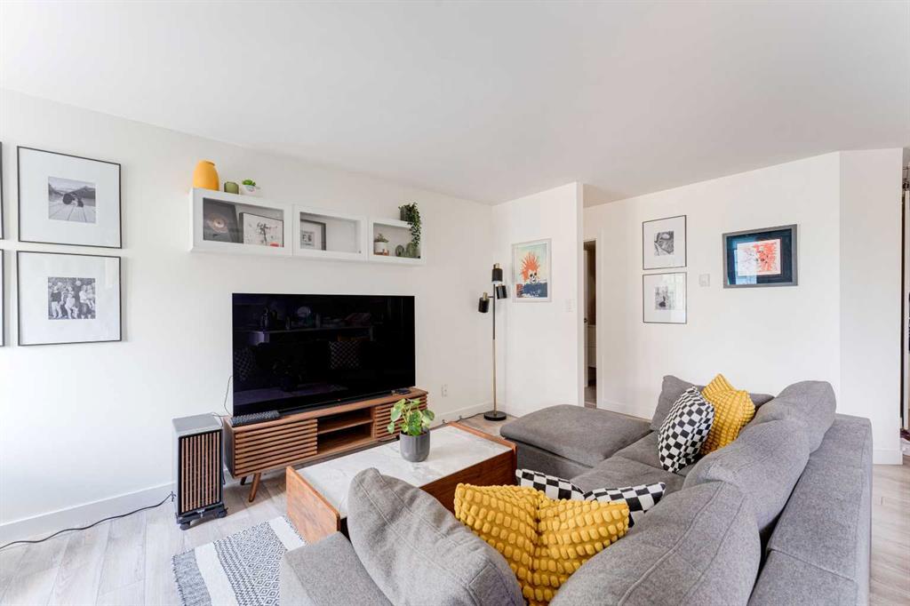 Welcome to your beautiful pet-friendly concrete condo nestled in the vibrant heart of the Beltline, where modern elegance meets urban convenience. This fully renovated 2-bedroom, 1-bath unit has been meticulously designed with custom features that set it apart from the rest. Step inside and enjoy the modern touches throughout, including custom real teak wood bulkheads, a built-in cocktail bar and dining area perfect for entertaining, a large quartz island that serves as the centerpiece of the open-concept floor plan. The warm laminate floors and stunning mid-century modern backsplash add a touch of sophistication, making this space as stylish as it is functional. The spacious primary bedroom is a true retreat, featuring a large custom closet and an additional built-in wardrobe, providing ample storage for all your personal items. The second bedroom is equally versatile, ideal as a guest room or a home office, tailored to fit your lifestyle. One of the standout features of this condo is its private laundry room; an uncommon luxury in many condos that also offers extra storage space. Additional upgrades include custom window treatments, additional wardrobe added in primary bedroom and more. Convenience continues with your own underground parking stall and access to fitness facilities, making everyday living a breeze. Building upgrades include new windows, newer elevator and more. Situated just one block from the best part of 17th Ave, you’re perfectly positioned to enjoy the vibrant culture, dining, and entertainment that the Beltline has to offer. Whether you're hosting friends or enjoying a quiet evening at home with downtown views, this condo offers the ultimate in stylish urban living. Welcome home!