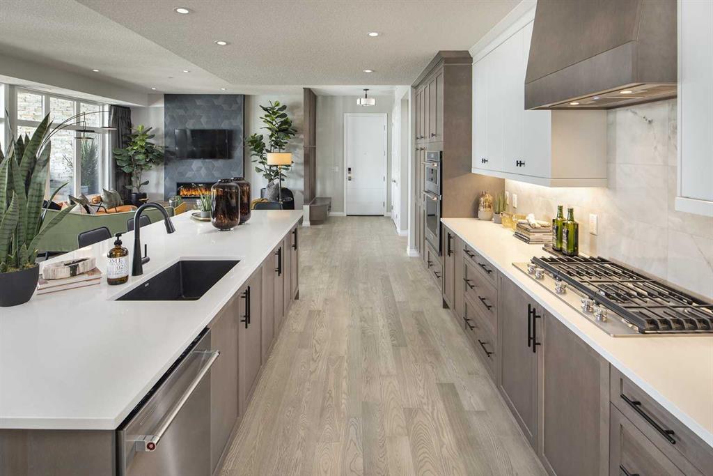 *VERIFIED Jayman BUILT Show Home! *Barrier-Friendly Unit* The Streams of Lake Mahogany present an elevated single-level lifestyle in our stunning Reflection Estate homes on Lake Side on Mahogany Lake. Selected carefully from the best-selling renowned Westman Village Community, you will discover THE SPRINGS, a home created for the most discerning buyer, offering a curated space to enjoy and appreciate the hand-selected luxury of a resort-style feeling while providing you a maintenance-free opportunity to lock and leave. Step into an expansive 2000+ builders sq ft stunning home overlooking the gorgeous Mahogany Lake featuring a thoughtfully designed open floor plan inviting an abundance of natural daylight with soaring 10-foot ceilings. 3’ Wide door, including pocket doors with a spacious front entry and ample space between the kitchen island and perimeter cabinets, offering excellent accessibility throughout the home; the home will surely take your breath away! The centralized living area, ideal for entertaining, offers a KitchenAid Built-In Wall Oven/MV Combo, French door refrigerator and built-in icemaker, KitchenAid stainless steel dishwasher, Broan power pack built-in cabinet hood fan, KitchenAid 36” gas range top, all nicely complimented by an Elevated Color Palette. All are highlighted with stunning Quartz countertops. You will enjoy two beautiful bedrooms and a generous central living area, with the Primary Suite featuring a spacious 5-piece oasis-like ensuite with dual vanities, a large freestanding tub, a stand-alone curb-less shower, and a generous walk-in closet. The Primary Suite and main living area step out to a 35ftx17ft terrace with a lovely view of the stunning Lake. Yours to enjoy and soak in every single day. To complete the package, you have a sizeable office area adjacent to the spacious laundry room and powder room that opens up to another expansive 25ft terrace and a double attached heated garage with a full-width driveway. Jayman's standard inclusions feature their trademark Core Performance, which includes Solar Panels, Built Green Canada Standard with an EnerGuide rating, UVC Ultraviolet light air purification system, high-efficiency heat pump for air conditioning, forced air fan coil hydronic heating system, active heat recovery ventilator, Navien-brand tankless hot water heater, triple pane windows and smart home technology solutions. Enjoy Calgary’s largest lake, with 21 more acres of beach area than any other community. Enjoy swimming, canoeing, kayaking, pedal boating in the summer, skating, ice fishing, and hockey in the winter with 2 private beach clubs and a combined 84 acres of lake & beachfront to experience. Retail shops & professional services at Westman Village & Mahogany’s Urban Village are just around the corner, waiting to be discovered.