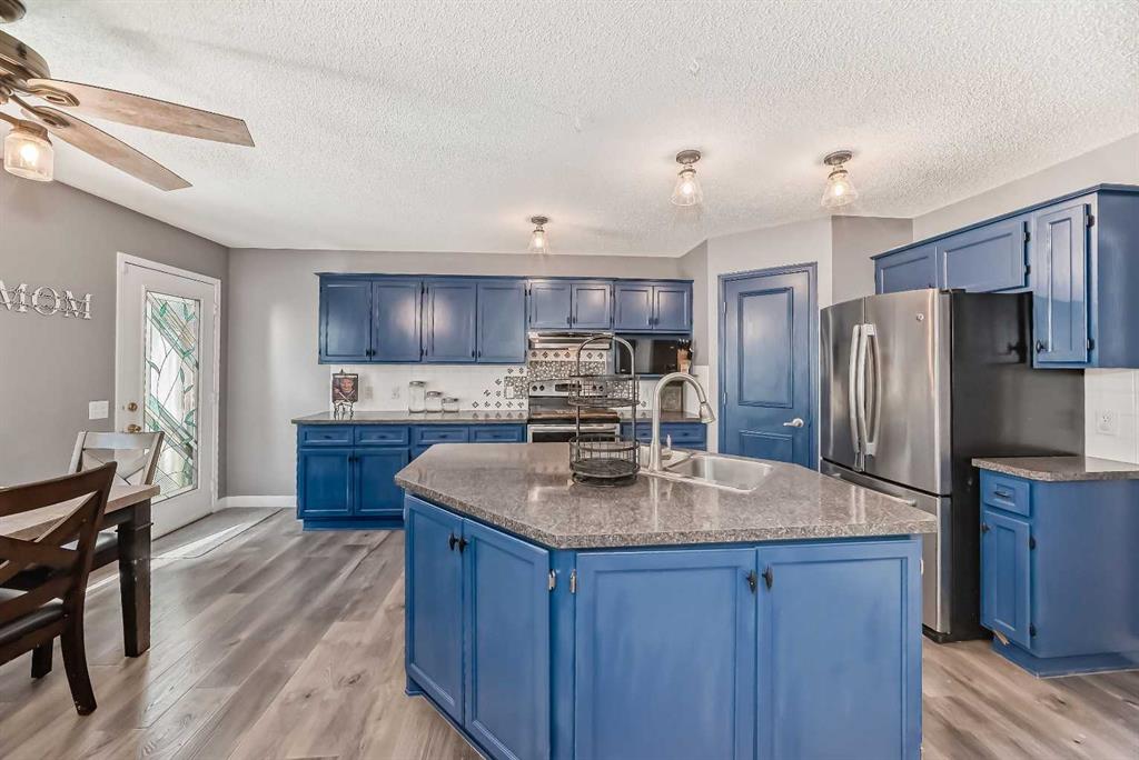 WELCOME to this fantastic updated 4 bed/2.5 bath two storey family home in Somerset, on a quiet street but a short walk to parks, playgrounds & schools! A lovely front porch & Gemstone lighting (2023) welcome you up to the home. The front entry features gorgeous custom millwork with numerous coat hooks. In the good sized family room, you'll notice the wide plank luxury vinyl that runs thru the whole main floor, and your eyes are drawn up to the soaring ceiling, a relaxing space to entertain family & friends. Going to the rear of the home you'll find a large kitchen/dining area with lovely blue cabinetry, a good sized island and plenty of counter space for the chef in the family. The laundry & powder room complete the main level. Walking into the west facing backyard, you'll find a serene space with a composite deck & beautiful wood gazebo, providing plenty of room to enjoy warm summer evenings. As well, there is a hot tub w/another wood gazebo over it so you can enjoy the tub in all sorts of weather! There is still plenty of grass to play on, ideal for your kids & fur babies alike. Going upstairs you'll appreciate the brand new carpet & fresh paint throughout the upper floor. The primary bedroom features a large picture window overlooking the living room, allowing tons of natural light to flood in, a good sized walk in closet & 4 pc ensuite. Two more generous bedrooms & a 4 pc main bath complete the level. The lower level features a good sized rec room, perfect for family movie nights. An additional bedroom complete the level. The single garage features full length over head storage and is accessible from both the main level & a stairway from the lower level. Roof shingles were replaced in 2021. The mature community of Somerset features numerous parks & playgrounds, walking/biking paths, close to schools and is only minutes from Shawnessy shopping & dining area, Somerset C-Train Station, MacLeod Trail and the Stoney Trail ring road. Book your showing today!