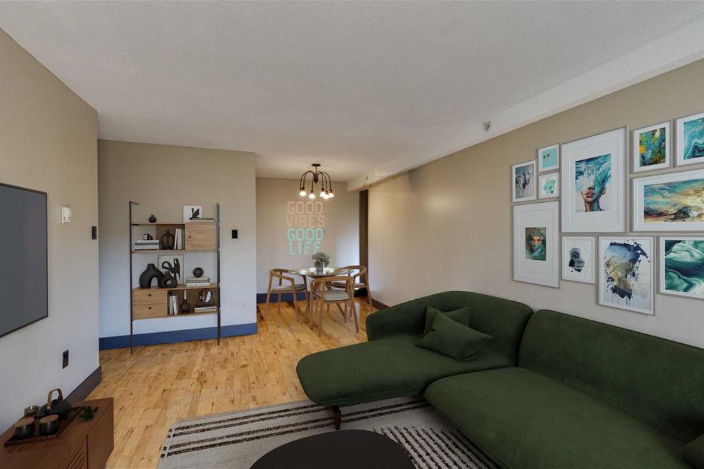 Discover the perfect blend of comfort and convenience in this meticulously maintained TOP-floor condo located in the vibrant community of the Beltline . Boasting 838 sq ft of well-designed living space, this home features two generously sized bedrooms, offering ample space for a king-sized bed, and a four-piece bathroom. The functional kitchen seamlessly connects to the living room and eating area, making it a great space for both everyday living and entertaining. Large windows flood the home with natural light, while the in-suite laundry adds to the convenience. Enjoy your huge South-facing balcony—ideal for relaxing or entertaining. Additional perks include an oversized titled underground parking stall and a prime location to call home. Don't miss out on this exceptional opportunity to own this amazing condo in Grosvenor House - walking distance from an array of amenities, including grocery stores, restaurants, pubs, an off-leash dog park, playgrounds, and the lively 17th Avenue. Pet friendly building with board approval.