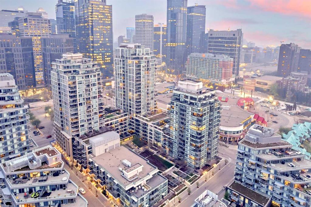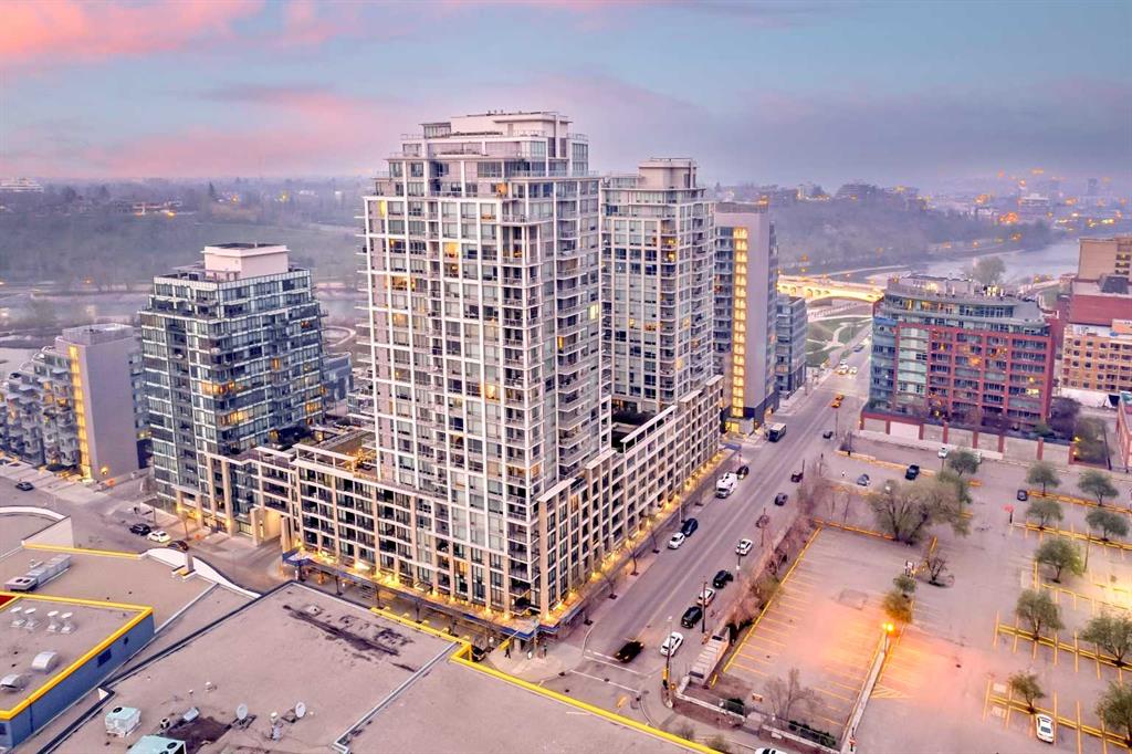 Experience elevated living like never before! This exquisite apartment in Calgary's Eau Claire district, nestled within the Riverfront development, boasts breathtaking views and sophisticated European design. Facing south, its floor-to-ceiling windows showcase a captivating downtown panorama. The stylish kitchen, featuring sleek oak cabinetry, is equipped with top-of-the-line European appliances, including a discreet panel refrigerator, gas range top, built-in wall oven, microwave, and dishwasher. The free standing island seamlessly integrates with the living room, facilitating seamless entertainment and conversation flow. Adjacent to the kitchen area, you also get a custom office desk with storage and space for a desktop. With 9’ ceilings accentuating the space, every inch of the stunning vista is appreciated. The studio design accommodates a spacious bedroom area near the entrance, complete with a frosted window for privacy and ample custom closet space. The luxurious bathroom offers a glass shower, central lavatory, and a custom vanity atop black tiled flooring. In-unit laundry with a stacked washer/dryer adds convenience. Enjoy premium amenities such as concierge service, fitness facilities, hot tub, sauna, movie theatre, social lounge, and two outdoor garden patios, along with visitor parking and a car wash. Embrace waterfront living along the Bow River and Princess Island Park, with downtown, Chinatown, East Village, Eau Claire Market, YMCA, shops, and restaurants all within walking distance. Whether for first-time buyers or investment purposes, this property offers low condo fees covering nearly everything, within a meticulously managed building, ensuring an exceptional lifestyle. See this one today!