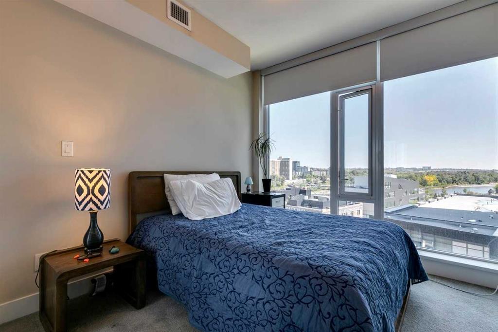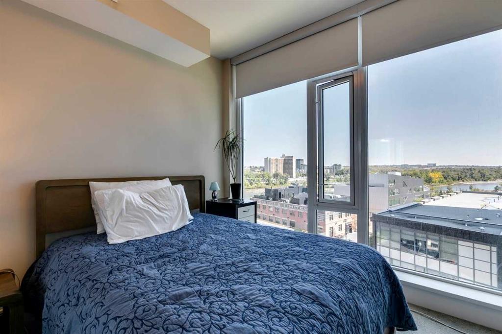 Public Remarks This is a beautiful and spacious 2 bed 2 bath with floor to ceiling windows in the EVOLUTION Fuse tower in East Village. Just under 1000 sq feet, this apartment has everything you need, from a high end kitchen to the floor heating bathrooms. The kitchen and the sitting room separate the large master luxurious bedroom and the 2nd bedroom and bathroom, so both rooms have its own privacy. The large deck with beautiful views of the river and the floor decking with gas BBQ is perfect for hosting summer gatherings. Residents of this unit will be able to take advantage of the two gyms, steam and sauna rooms, courtyard with BBQ and the party room. The apartment is conveniently located across from the river and bike paths and the Simmons building, minutes from the train station and grocery store...and walking distance in to the core downtown.