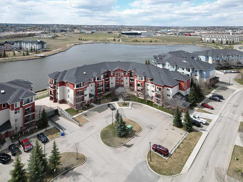 Public Remarks Welcome to this stunning 913 sq.ft. top-floor unit, featuring 2 bedrooms, 2 bathrooms, a titled heated underground parking spot, and an assigned storage unit. This home offers unparalleled comfort and convenience, with breathtaking views right across from the pond. Step inside to experience the airy 9-foot ceilings and an open concept layout that seamlessly combines the kitchen, dining, and living areas. The southeast-facing living room is filled with natural light and opens onto a spacious balcony, your perfect private escape with a gas hookup for easy BBQing. The primary bedroom boasts a generous walk-through closet leading to a 3 piece ensuite, while an additional 4-piece bath offers even more convenience. The in suite laundry room provides ample space for storage and shelving. A cozy den with a built in desk makes working from home a breeze. This unit also includes a titled underground parking stall (#405) and a secure storage unit (#229 assigned) conveniently located on the same floor. The well-managed, clean, and quiet complex is pet-friendly, welcoming one pet with board approval. Enjoy the convenience of being close to the VIVO Center, Notre Dame High School, SuperStore, Home Depot, Canadian Tire, and easy access to Deerfoot and Stoney Trail for seamless travel across the city. This property is perfect for first-time buyers or investors! Don’t miss out on this exceptional opportunity schedule your private showing today!