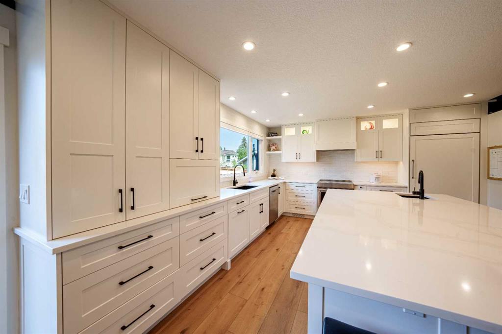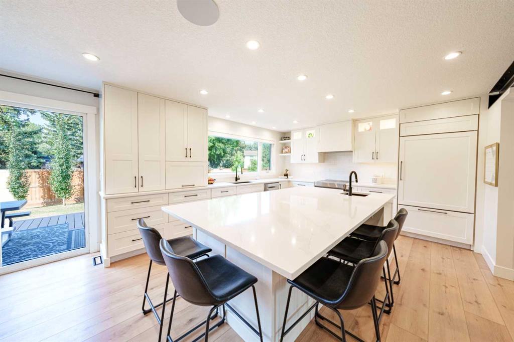Luxuriously renovated 5 bedroom masterpiece on a massive 9,800 sq. ft. lot in the coveted golf-side community of Willow Park Estates. Immediately be impressed by the beautiful architecture boasting white Hardie board siding highlighted by charming brickwork and a charming front porch. The interior is equally as striking, stunningly renovated to create an open floor plan with beamed flat painted ceilings, built-in speakers throughout and lots of pot lights to illuminate your evenings. Natural light flows through oversized windows during the day highlighting the upscale designer details, quality craftsmanship and wide plank flooring. Nearly all of the windows have been replaced plus central air conditioning has been added ensuring your comfort in any season. The living room is great for both unwinding and entertaining with clear sightlines for unobstructed conversations. Culinary adventures await in the gourmet kitchen featuring a Subzero panelled fridge, an induction cooktop, full-height cabinetry, stone countertops, 2-tier utensil drawers and a massive centre island to gather around. Adjacently, the dining room has ample space for family meals and entertaining. Oversized patio doors frame tranquil backyard views and encourage a seamless indoor/outdoor lifestyle. Convene in front of the floor-to-ceiling stone-encased gas fireplace in the family room with dark panelled walls and classic built-ins creating an inviting atmosphere. Those beautiful floors are continued onto the upper level where 4 of the spacious bedrooms reside. The primary bedroom is a private oasis with 2 closets, one of which leads to the luxurious ensuite boasting dual sinks, a deep soaker tub and an oversized shower. All of the bathrooms in the home have been stunningly upgraded with high-end Grohe lifetime warranty products. 2 bathrooms even have in-floor heat keeping toes warm and cozy. Gather in the sophisticated finished basement and come together over movie and games nights and engaging conversations in front of the modern electric fireplace. The extravagance continues throughout this level with a large guest bedroom that includes a walk-in closet, another posh full bathroom and a huge exercise room. The expansive composite deck and lower patio in the ginormous backyard will have you hosting summer barbeques and spending your weekends lounging enjoying the immense privacy. A new fence and retaining wall were installed 4 years ago surrounding the grassy yard that is the perfect play space for kids and pets. A charming shed hides away seasonal items and is even equipped with electrical. This extraordinary home is situated in a quiet, much sought-after neighbourhood within walking distance to schools, several parks, the Trico Centre, Southcentre Mall and more. Mere minutes to Willow Park Golf and Country Club, the Anderson C-Train Station, Willow Park Shopping Village, Fish Creek Park and easy access to major thoroughfares for a quick and easy commute.