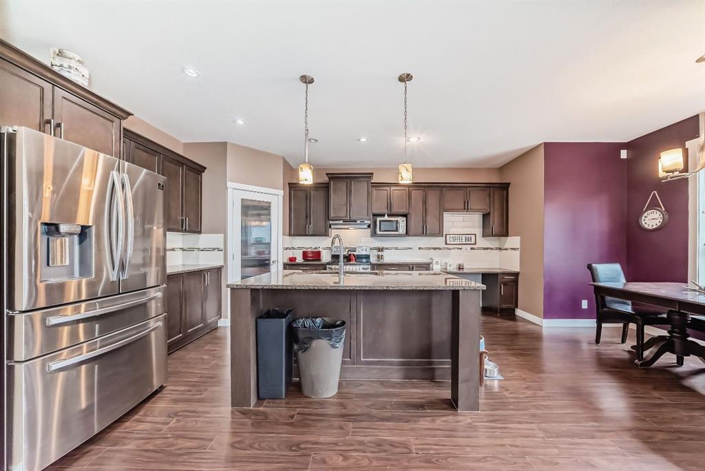 Welcome to this beautiful two storey home in the gorgeous neighbourhood of Reunion, Airdrie. This house boasts of Open concept main floor offers a big living room with a gas fireplace, a great size kitchen with stainless steel appliances, granite countertop and gorgeous cabinets with tons of storage and a corner pantry, a built in desk , 2 pc bath, and laundry. Upstairs you will find the master bedroom with vaulted ceiling and a massive owner's 5 pc ensuite with double sink, good size standing shower, stand alone soaker tub , and W.I.C along with two additional bedrooms, 4 pc bath, and a decent size bonus room to relax after a long day at work. Fully finished basement offers big rec room, 4pc bath, and another bedroom. This excellent home is conveniently located minutes away from shopping centre, schools, parks, playground, pond, and a golf course. BONUS - This home comes with a HOT TUB and a TRAMPOLINE. Hot Tub needs some repairs. Call your fav Realtor today for a private showing!!!