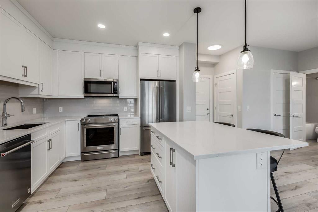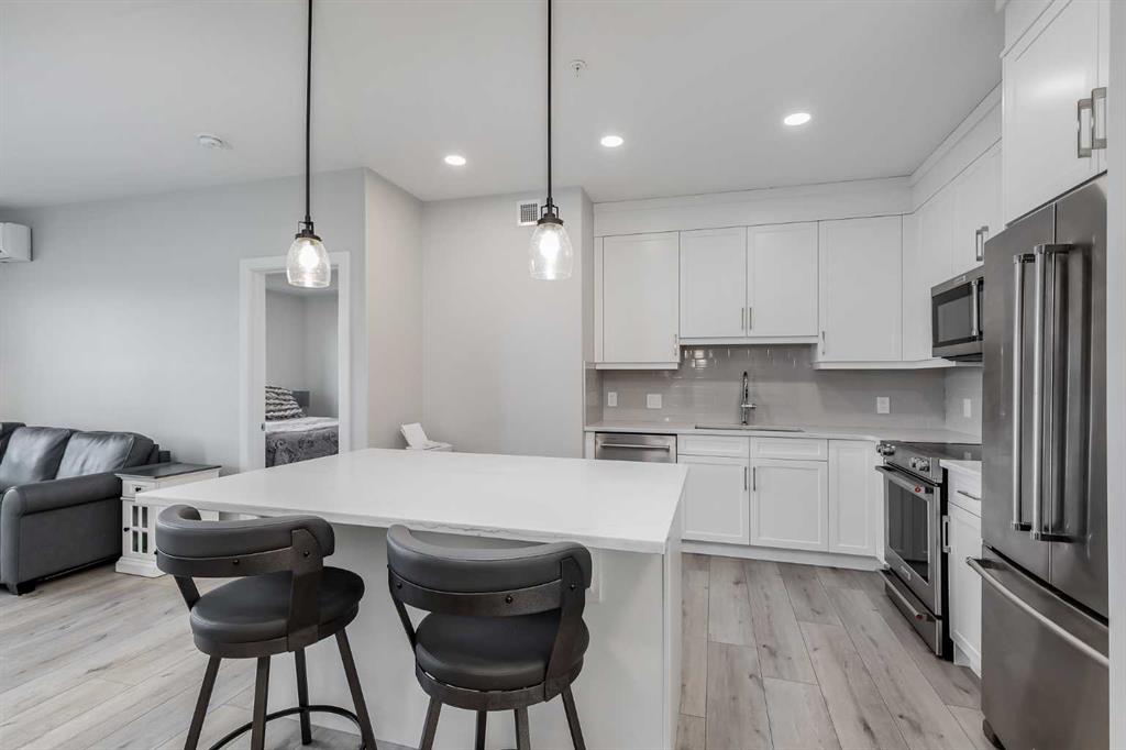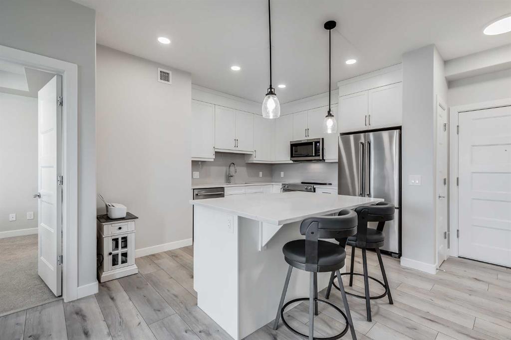 Public Remarks Welcome to 80 Greenbriar Place NW! A stunning luxury condo that redefines comfort and sophistication. Nestled in the heart of the coveted Greenwood/Greenbriar community, this fully updated and newer home offers an unparalleled blend of elegance and convenience, making it the perfect sanctuary for discerning buyers. Entering this 837 sq ft haven, you’re greeted by an expansive open-concept main floor that exudes warmth and style. The luxury vinyl plank flooring adds a touch of elegance, perfectly complementing the high 9-foot ceilings that enhance the sense of space and light. The living area flows seamlessly into the dining and kitchen spaces, creating an ideal environment for relaxation and entertaining. The kitchen is a chef’s dream, featuring sleek quartz countertops that provide ample workspace and a modern aesthetic. Stainless steel appliances and custom cabinetry complete the picture, making meal preparation easy. The kitchen island doubles as a breakfast bar, perfect for casual dining or enjoying a cup of coffee. Adjacent to the kitchen, the living room is a cozy yet stylish retreat. Natural light pours in through the west-facing windows, offering beautiful sunsets. The patio is private and cozy and the balcony is equipped with a gas line, ideal for those who love to grill! The two bedrooms are thoughtfully designed to provide maximum comfort and privacy. The master suite is a tranquil escape, featuring newer carpet, a generous walk-in closet, and a beautiful ensuite bathroom. The ensuite boasts quartz countertops, modern fixtures, and a spacious shower that invites you to relax and rejuvenate. The second bedroom is equally inviting, with ample closet space and easy access to the second bathroom, which mirrors the high-end finishes found throughout the home. A major highlight of this property is the titled underground tandem parking stall. This convenient feature ensures your vehicles are safe and secure, with easy access to your residence. Directly in front of the parking stall, you'll find a separate storage locker, providing ample space for your seasonal items, or extra belongings. Additionally, the unit's proximity to the elevator makes bringing groceries and other items into your home incredibly convenient. Outside, the community offers a vibrant lifestyle that is second to none. The location is truly unbeatable, with easy access to the number 1 highway and Stoney Trail, making commuting a breeze. For those who love to shop, an array of amenities are just minutes away. Additionally, the prime location offers easy access to the mountains, making weekend getaways and outdoor adventures effortlessly accessible. Nature enthusiasts will delight in the beautiful walking paths near by! In summary, 80 Greenbriar Place NW is not just a home; it's a lifestyle! With its exquisite interior features, including luxury vinyl plank flooring, quartz countertops, and 9-foot ceilings and air conditioning this home truly has it all! Book your showing now!