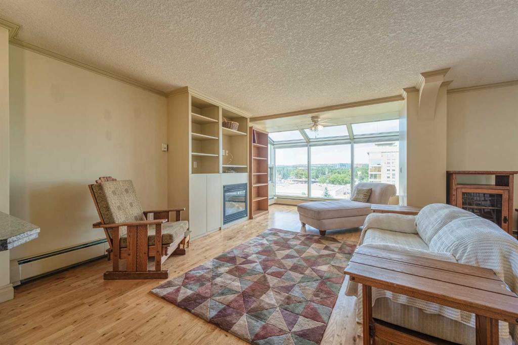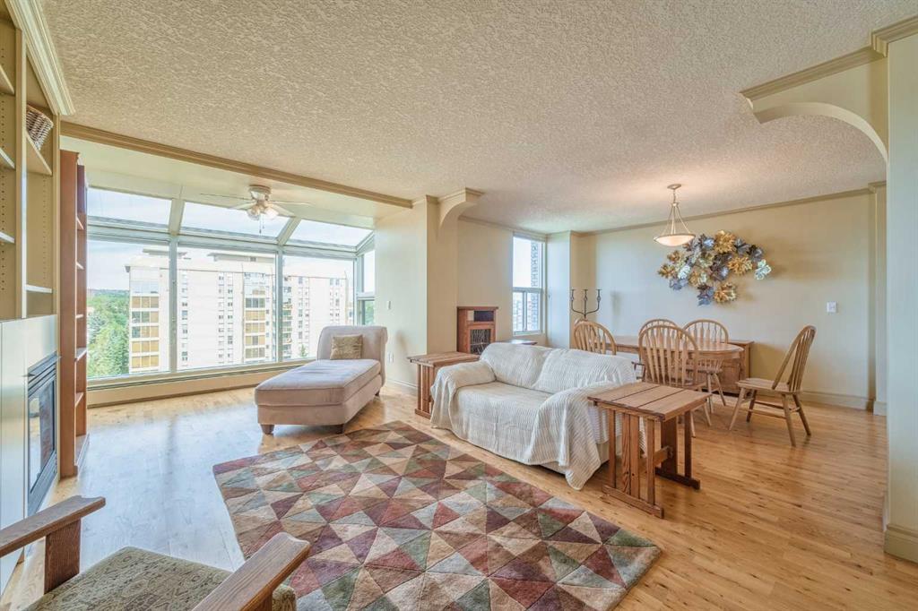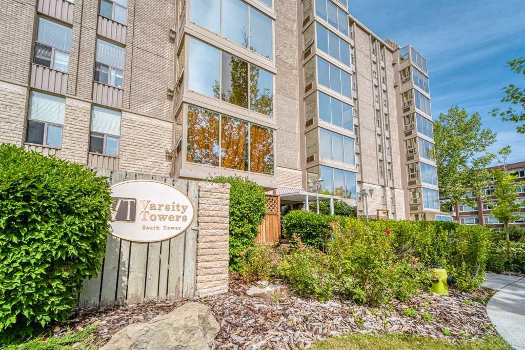 Public Remarks Welcome to this bright and spacious 2 Beds, 2 Baths TOP Floor End Unit with 1,178 sq. ft. of living space in Varsity Towers! Upon entering, you'll be welcomed by an open concept with Living room and Kitchen seeing the Gorgeous views of the valley, west of COP & the mountain. The Living Room featuring a cozy gas fireplace, a ceiling fan, and lot of windows that introduce tons of natural light. The Kitchen boasts Granite countertops with an eating bar, stainless steel appliances, and cabinets extending to the ceiling. A good sized Dining Room is next to the Living Room. The Primary bedroom has a ceiling fan and includes a 5 pc Ensuite with a double vanity, jetted tub, Granite counters, and a standing shower. Additionally, a 2nd Bedroom, a Full bath, and an in-suite Laundry. Enjoy the comfort of air conditioning during the summer months. Residents have access to a wealth of amenities, including an indoor swimming pool, hot tub, gym, sauna, library, free car wash, rooftop patio, courtyard, and heated underground parking. Conveniently located minutes from the University of Calgary, Market Mall, Nose Hill Park, Foothills Hospital, and downtown Calgary, with quick access to Crowchild Trail. Don’t miss this opportunity!