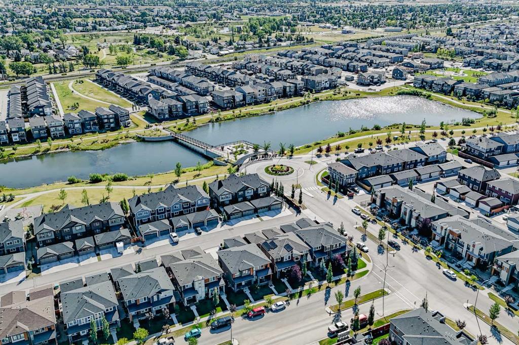 WELCOME HOME to LAKE FRONT LUXURY living in Midtown! This ORIGINAL owner, 2 storey end unit townhome with the largest lot on the street features a DOUBLE detached garage, an additional 4 parking spaces, 2 of which are tandem allowing for plenty of space to park a large RV, NO CONDO FEES, a VIEW THAT YOU WILL NEVER TIRE OF is sure to impress. The main level offers 9 foot ceilings, upgraded laminate flooring, a spacious living room and dining area and beautifully upgraded kitchen with a pantry, and a large island, quartz counter tops, and stainless steel appliances. The 2 piece bath completes this floor. Upstairs you are greeted with 3 bedrooms and 2 full baths. The large master suite includes a walk in closet, ensuite bath and a private balcony overlooking Midtown Lake and the promenade. A ABSOLUTELY PERFECT spot to enjoy your morning coffee while you watch the sunrise over the lake. Upstairs laundry completes this level. The basement includes a roughed in bathroom and awaits your future designs. The rear yard with a large ground level patio, and a raised deck is low maintenance landscaped. The front yard has no street or vehicle access which provides a perfect quiet urban oasis allowing you to enjoy the green space and lake just steps from your front door. Situated just a 2 minute walk from shopping, dining, doctors and dentist and a 2 minute drive to numerous schools. This home is ideal for families and SNOW BIRDS alike, COME HAVE A LOOK....and FALL IN LOVE !