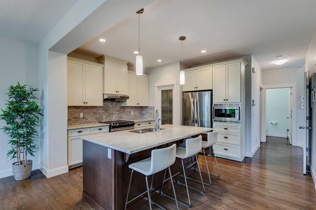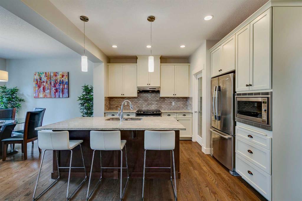 PRICE REDUCED! ASPEN WOODS! FULLY FINISHED NEARLY 2300 SF DETACHED HOME IN ASPEN WOODS FOR UNDER $1M! This 2 storey is ideally situated on a quiet CUL-DE-SAC LOCATION and NO NEIGHBOURS BEHIND! Walking distance to many great schools including Webber Academy, Guardian Angel, Roberta Bondar, Aspen Landing Shopping Centre, and Bumblebee Park. Quick access to Stoney Trail. Gorgeous finishings throughout including HIGH 9’ CEILINGS, wide open floor plan, MAIN FLOOR OFFICE, WALK THROUGH PANTRY, WHITE SHAKER CABINETRY with MAPLE DOVETAIL DRAWER BOXES, LARGE ISLAND, GRANITE COUNTERTOPS, built-in microwave, HARDWOOD FLOORING, gas fireplace with full height stone surround, great sized table area, and huge mudroom. Wood SPINDLE RAILING leads to the upper floor with MASSIVE BONUS ROOM, 3 large bedrooms including the king sized primary, beautiful ensuite with separate TILED SHOWER, and walk-in closet. The lower level is beautifully finished with a recreation area, huge bedroom, 4 pce bathroom, and large mechnical room for storage! The double attached garage is large enough to fit 2 full sized SUVs. So many extras in this home - CENTRAL AIR CONDITIONING (2022), knockdown ceilings, pot lights, the list goes on and on! Want to live in ASPEN WOODS and be walking distance to many great schools and ASPEN LANDING then this is it! $948,888. This property is priced to sell and will not last long!