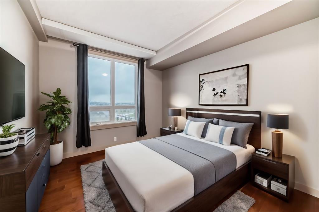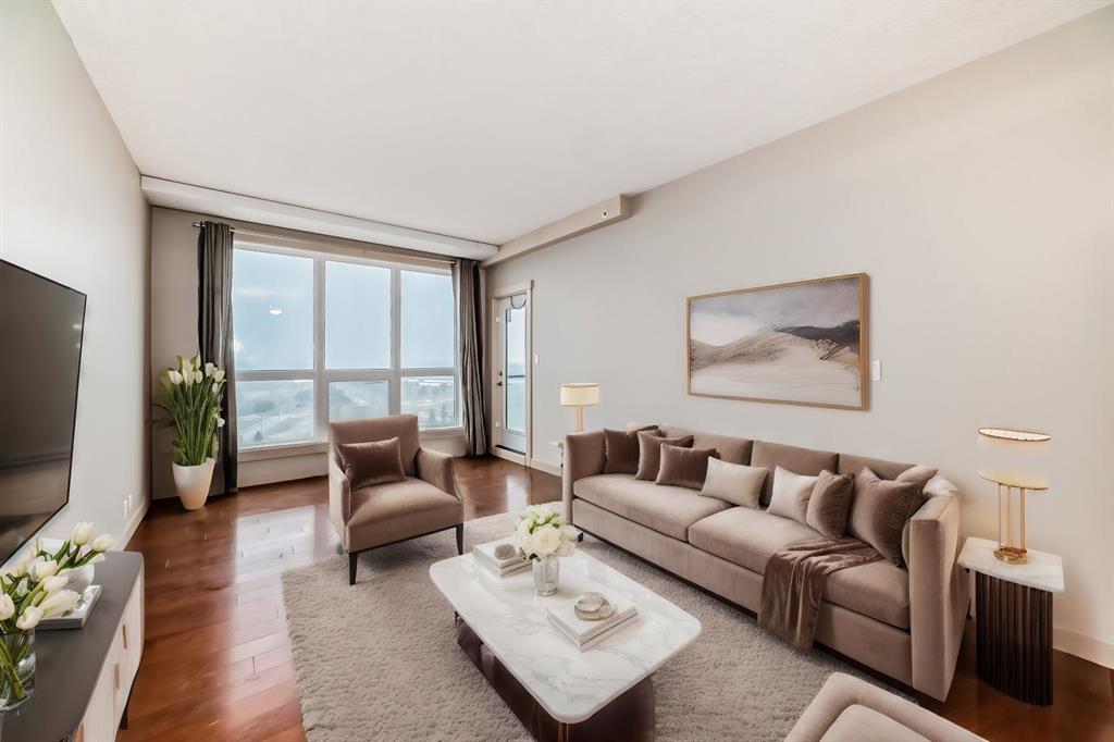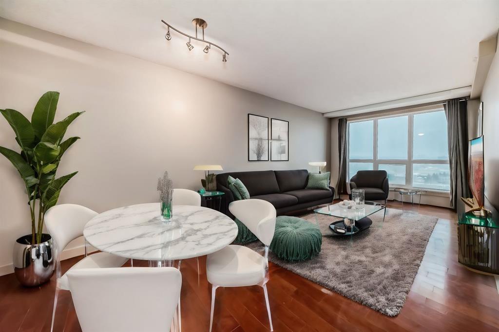 Public Remarks Discover modern living in this beautifully updated 2-bedroom, 2-bathroom condo, perfectly located near shopping, nightlife, and a wide range of amenities. With floor-to-ceiling windows, enjoy breathtaking views that provide a serene escape. This freshly painted unit with hardwood boasts a stylish kitchen featuring granite countertops, rich dark-stained cabinets, and an inviting eating bar, plus additional space for a dining table—ideal for entertaining. The spacious living room offers flexibility in furniture arrangement, and the fabulous balcony provides an outdoor space to soak in the city views. The primary bedroom is generously sized, with ample closet space and a private ensuite bathroom. The second bedroom is perfect for guests or roommates, complete with their own bathroom. A stackable washer and dryer are conveniently located down the hall for easy access. Enjoy the comfort of underground parking, ensuring your vehicle stays warm in winter and cool in summer. The condo is directly connected to Save-On-Foods via an indoor walkway—perfect for those cold winter months. With easy access to the Heritage C-Train Station and various bus routes, getting around the city is a breeze. The recently serviced boiler system ensures reliable comfort year-round. Contact your favorite realtor for a private showing today!