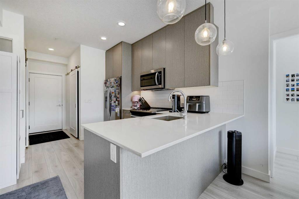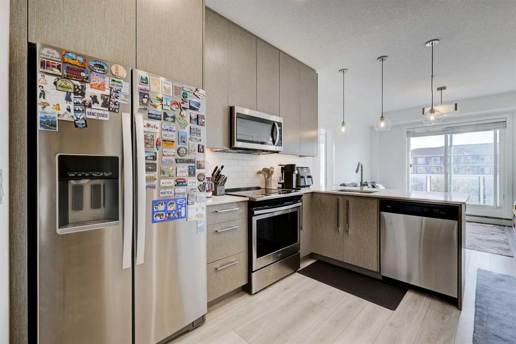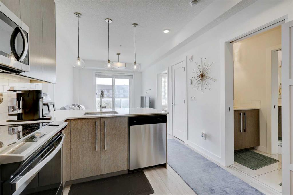 HOME SWEET HOME! This is your opportunity to indulge in maintenance free living in this stunning and modern 3rd floor condo situated in the sought-after ‘Legends of Cornerstone’ building in the desirable community of Cornerstone. This chic unit was custom-built in 2021 offering 3 bedrooms, 1.5 bathrooms and 2 PARKING STALLS. As you walk into this spacious, sun-drenched unit you will notice the sophisticated, open concept floor plan with a gourmet gleaming white kitchen with a quartz peninsula island/breakfast bar, stainless steel appliances, stylish backsplash, ample counter and cabinet space. 3 spacious bedrooms make this ideal for anyone looking for a guest room or for extra space for a home office. The magnificent master retreat has a walk-in closet and a terrific 4 piece ensuite bathroom. Completing this charming condo is another convenient vanity bathroom, 9 foot ceilings, in-suite laundry room with additional storage space and a balcony to enjoy your tranquil views. This unit features 2 TITLED PARKING SPOTS-one underground and 1 surface stall and a separate TITLED STORAGE LOCKER, making this a rare find you simply don't want to miss out on! Exclusive building amenities include a fitness/yoga centre, entertainment/media room, courtyard with a garden area, kids play room and a pet spa! Located close to all major amenities including schools, public transportation, parks, shopping, restaurants and major roadways. This is an unbelievable opportunity for first-time home buyers and investors alike! Book your private viewing of this GEM today!