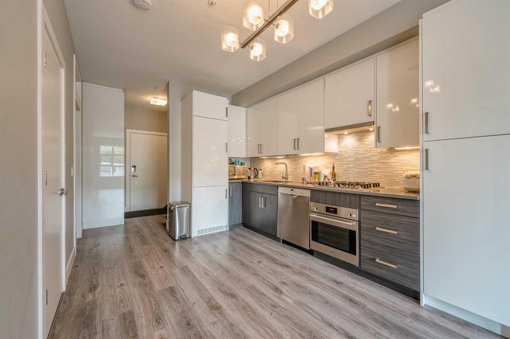 Come experience stylish living in the heart of the inner-city community of Bridgeland with this 2 Bed, 2 full Bath condo. This unit features an open-concept Kitchen featuring modern white cabinets, integrated stainless steel appliances, Gas cooktop, Quartz countertops, and mosaic backsplash. The spacious Living room is great for relaxation which leads to the private balcony with gas hookup for summer BBQ. The Primary Bedroom offers great space, floor-to-ceiling built-in closet and a 4 piece ensuite bath with Quartz countertop. The 2nd bedroom also offers good space and built-in closet. Additionally, the unit features in-suite laundry and Tilted underground parking and assigned storage in the parkade. The condo amenities included two large rooftop patios with breathtaking downtown views, well-equipped gym, yoga room, dog wash station, and bike maintenance area. Enjoy the vibrant lifestyle and convenience living in Bridgeland with many restaurants, coffee shops, biking and walking paths. Don’t miss this opportunity.