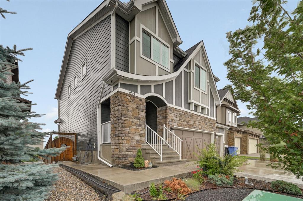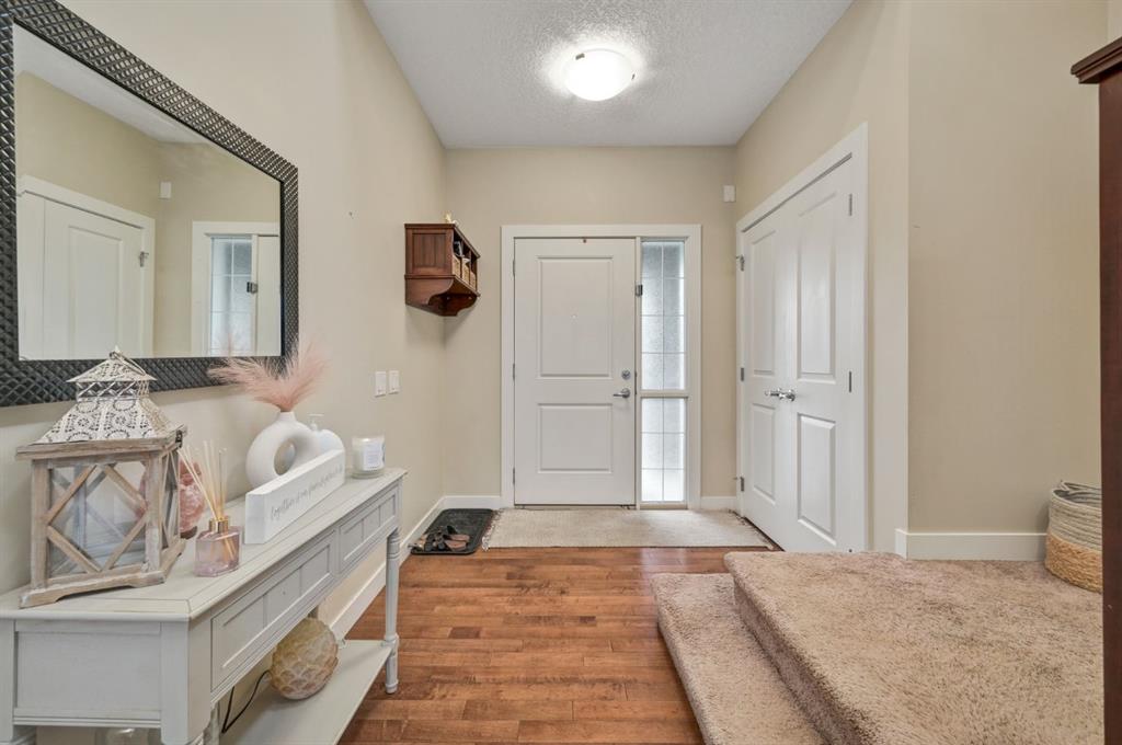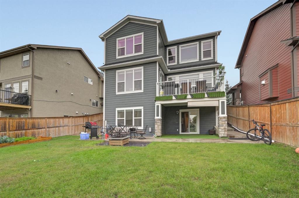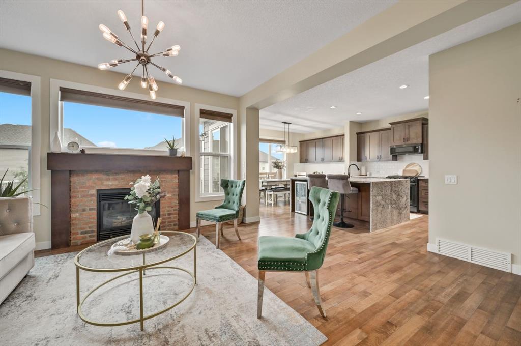 Welcome to this exquisite 2-storey, 4-bedroom, 3.5-bathroom home, complete with a triple car garage, a fully developed walkout basement, central air conditioning, and a host of upgrades. As you enter the home, you're greeted by an inviting hallway that leads to a spacious living room. Here, you'll find a stunning exposed brick wall, a cozy gas fireplace, and large east-facing windows that flood the main floor with natural morning light. The open-concept design seamlessly connects the living area to the chef's kitchen, which is equipped with upgraded stainless steel appliances, including a gas stove. The kitchen also features a walk-through pantry, ample cupboard and counter space, a large center island with granite waterfall edges, and barstool seating. Adjacent to the kitchen, a spacious dining area is perfect for family meals and entertaining, with additional cabinetry for storage. From the dining area, step out onto the beautiful balcony, ideal for soaking up the sun and complete with a gas line for BBQs. Head upstairs to find a versatile bonus room, perfect for a home office or play area, along with three well-appointed bedrooms and two full bathrooms. The primary bedroom boasts vaulted ceilings, an exposed brick accent, a walk-in closet, and a luxurious 5-piece ensuite. This ensuite oasis includes a large soaking tub, separate his-and-hers vanities, a standalone shower, and a private water closet. The two additional bedrooms share a 4-piece bathroom with a tub/shower combo and under-sink storage. Conveniently, the upper level also includes a dedicated laundry room. The fully finished walkout basement offers even more living space with its own separate entrance leading to a concrete patio and the expansive, fully fenced, landscaped backyard—perfect for outdoor entertaining. Inside, this lower level features a large family room with an open floor plan to a wet bar, complete with a refrigerator and cabinet storage. You'll also find a spacious bedroom, a 3-piece bathroom with a beautifully tiled shower and glass doors, and a utility room with extra storage. Additional highlights of this home include high ceilings, accent walls, a new furnace installed in January 2024, and a triple garage with plenty of room for vehicles and storage. With its thoughtful layout and luxurious touches, this home is perfect for families and entertainers alike.