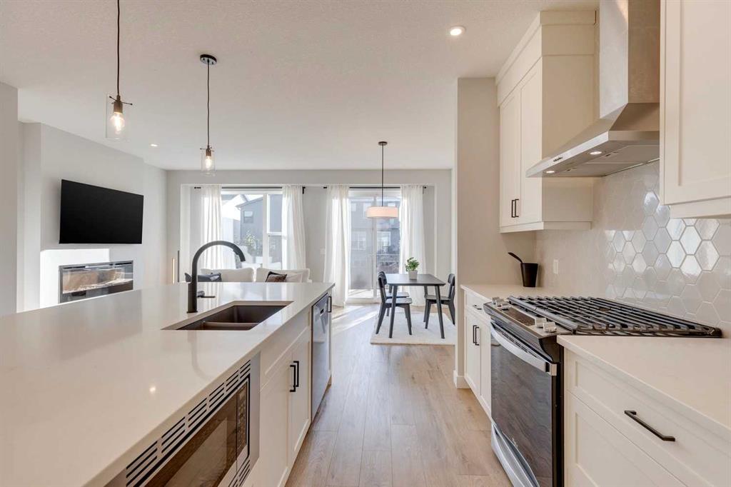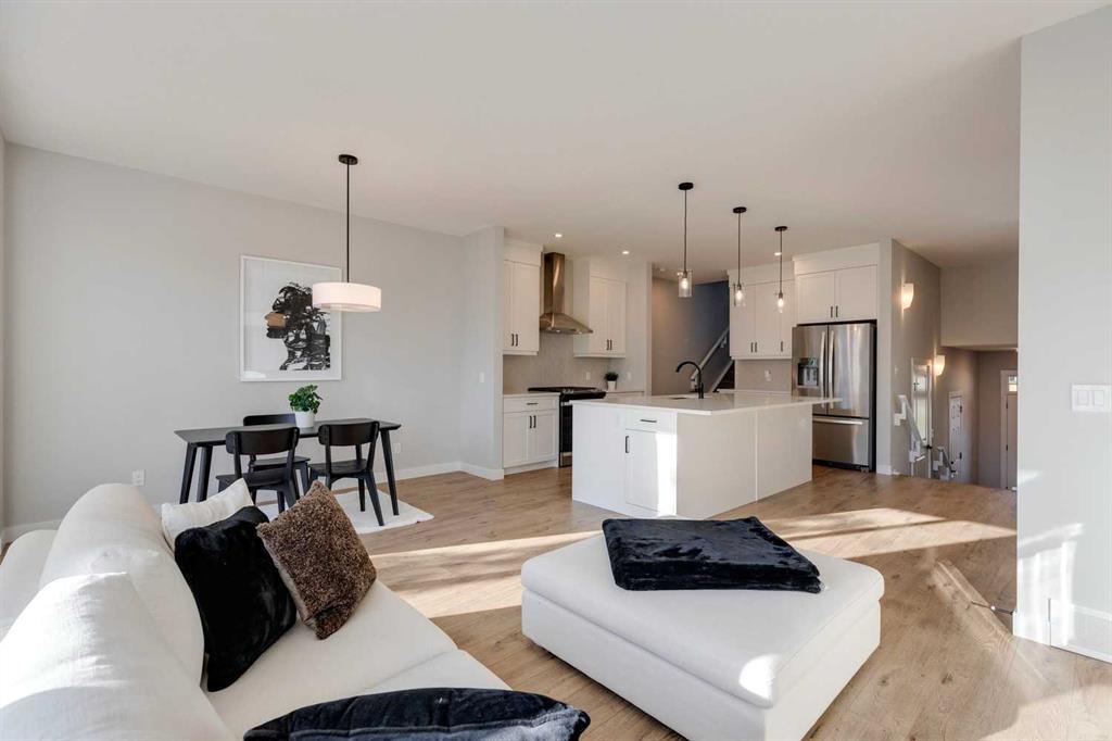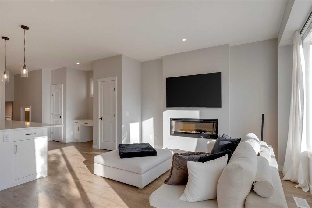 LIKE NEW MODERN HOME WITH 3 BEDROOMS + BONUS ROOM | UPPER FLOOR LAUNDRY | ATTACHED GARAGE | MANY UPGRADES THROUGHOUT | This gorgeous detached home features a modern, luxurious exterior, located in the heart of the family friendly community of Rockland Park! Upon entering, you'll be welcomed by modern interior finishes, including luxury vinyl plank flooring, high ceilings, timeless modern finishes and oversized windows that let in plenty of natural light. The kitchen truly stands out with its expansive island topped with quartz countertops, a pantry, stainless steel appliances, gas stove, hexagon tile backsplash, ample counter space, and a large fridge with filtered water. The adjacent great room featuring the dining room and living room provide a fantastic space for entertaining, enhanced by a stunning electric fireplace that adds a cozy atmosphere. Large sliding patio doors and windows along the back flood the area with sunlight. Dine al fresco on the sprawling balcony equipped with a gas line with the large and functional backyard. On the main floor, you'll also find a versatile office space with built-ins & a convenient 2-piece powder room. Head upstairs to discover the central bonus room, perfect for relaxation and entertainment. The built-in desk area is a practical addition, great for study sessions. The primary suite, boasts a luxurious 5-piece ensuite featuring quartz countertops, a soaker tub, spacious shower, & expansive walk-in closet. Two more bedrooms, a full 4-piece bathroom, a bonus room and upper floor laundry complete the top floor. The basement is ready for your personal touch and includes a bathroom rough in! You'll love the vibrant community of Rockland Park, offering walking distance to the community centre, outdoor swimming pool, acres of parks and green spaces, easy access to the Bow River, and an abundance of shops, restaurants, and amenities. Don’t miss your chance to be part of this remarkable community!