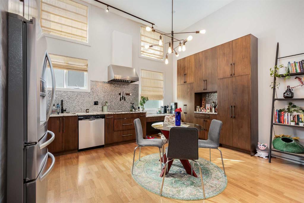 **ELEGANT EXECUTIVE CONDO WITH UNMATCHED CHARM!** Imagine driving down a beautiful, TREE-LINED STREET steps away from all that 17th avenue has to offer. This is the place! As you step through the GRAND ENTRANCE and ELEGANT GATE, the stresses of the day fade away in the SERENE COURTYARD, surrounded by LUSH GREENERY & CALMING FOUNTAINS. Once inside this STUNNING EXECUTIVE CONDO, you’ll be amazed by the SOARING 14FT CEILINGS & WELCOMING, modern decor, HEATED ENGINEERED HARDWOOD FLOORS THROUGHOUT. The bright, INVITING KITCHEN is perfect for creating your culinary masterpieces with its ample space for entertaining, induction cooktop and high end appliances.The SPACIOUS, COZY LIVING AREA includes a NATURAL GAS FIREPLACE and invites you to unwind at the end of the day to the sounds of the water fountain in the interior courtyard just outside your window. The primary retreat offers LUXURY & COMFORT, featuring a DREAM CLOSET & a SPA-LIKE ENSUITE that will make every day feel like a getaway. The generous storage room featuring CALIFORNIA CLOSETS storage will make this spacious condo feel even bigger. Plus, enjoy the CONVENIENCE of warm indoor parking! This STUNNING home could be yours for just $28,758.80 down & $2,853.44 per month (o.a.c.). Don't miss out on this opportunity to live in STYLE & COMFORT!