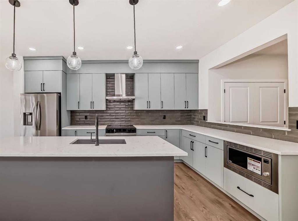 Public Remarks Welcome to this sleek, EAST-facing 2-storey home in Rangeview, expertly designed by Excel Homes. Spanning 3,000 SQFT HOME on 3212 SQFT LOT, 2248 SQFT of Main and Upper level, this property is a blend of style and functionality, complete with a fully finished 751 SQFT 2-bedroom legal suite built by Excel Homes. From the moment you walk in, the impressive entryway sets a modern, inviting tone for the entire home. The main floor showcases a stunning kitchen with two-tone cabinets(Teal Color) that reach the ceiling, glass-front doors, and chic puck lighting. With built-in appliances and quartz countertops, this kitchen is every chef’s dream. The spacious dining area flows seamlessly to a 10X10 deck, perfect for effortless indoor-outdoor living. A convenient main floor bedroom with an attached full bathroom adds flexibility to the space. Upstairs, you’ll find three expansive bedrooms, including a bonus room with vaulted ceilings and a dedicated laundry area. The second bedroom is even larger than the primary suite, featuring a massive walk-in closet. The ensuite bathroom is pure luxury, boasting dual sinks beneath a full-width mirror, a deep soaking tub, and a glass-enclosed shower with sleek, full-height tiling. The fully developed 2 BED legal suite below is a standout feature with all the appliances, separate furnace and hot water tank for Basement, offering a large rec room with modern pot lighting, two bright bedrooms with oversized windows, in-suite laundry, and a well-equipped kitchen with full-sized appliances and a stylish bath. Plus, this home comes with a transferable Alberta New Home Warranty, ensuring peace of mind. This home is more than just a place to live—it’s a statement in modern living. You have to see it to truly appreciate its contemporary design and thoughtful details. Get ready to fall in love with your new home in Rangeview—where style meets comfort with a serious "WOW" factor. Call your Favourite Realtor now!